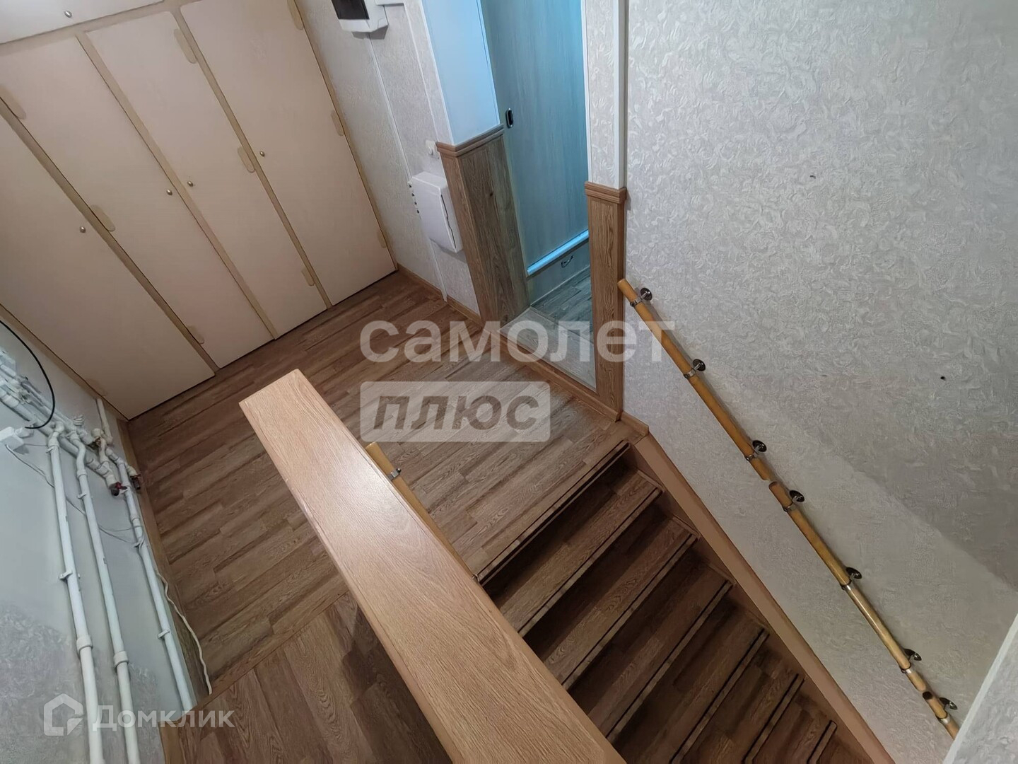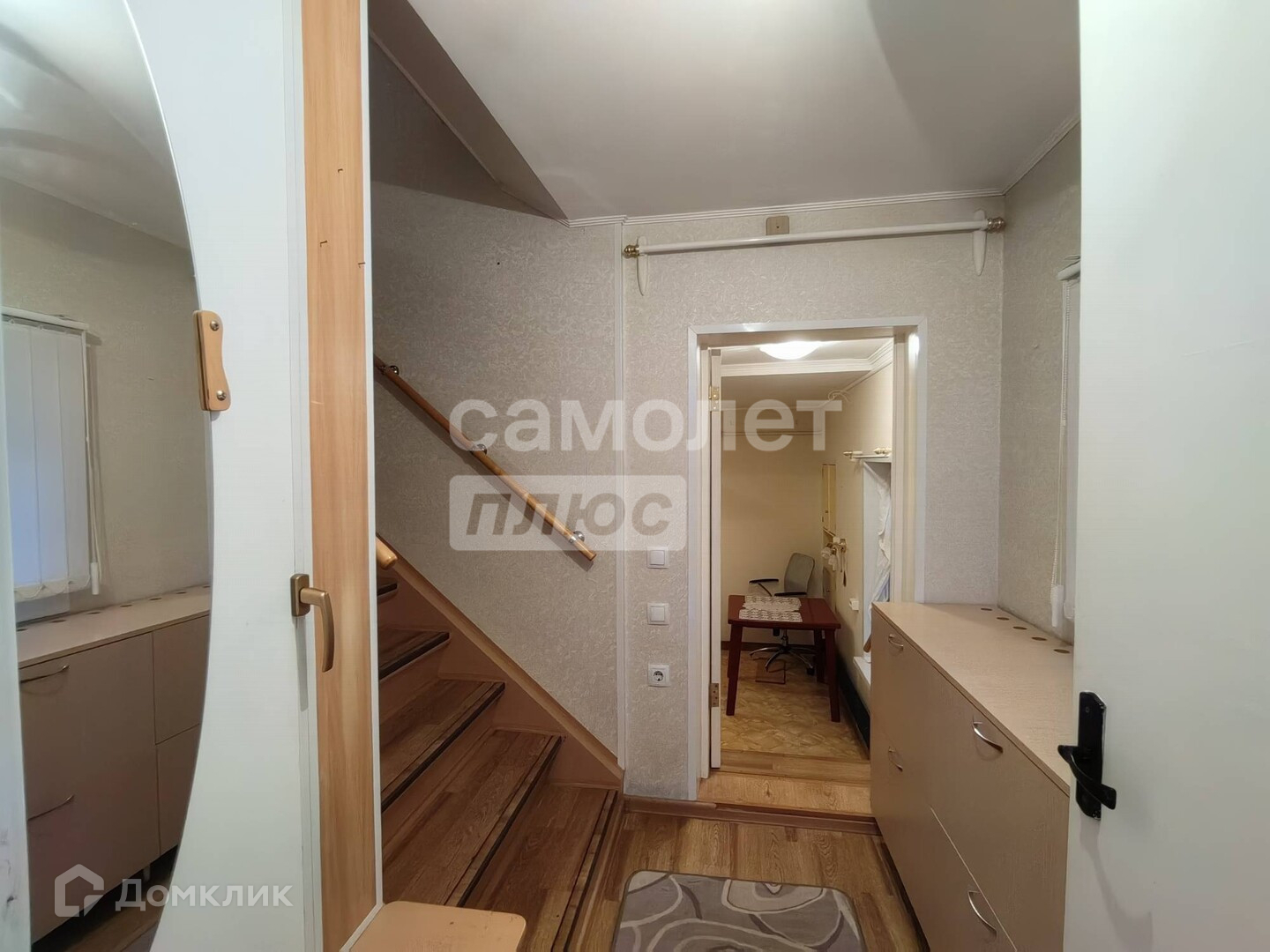 На второй этаж ведет широкая деревянная лестница. Там три изолированные комнаты, площадью 17/9/9 кв.м, уютный кабинет, санузел и два коридора с вместительной системой хранения. Так же имеется чердачное помещение, выход на которое есть только в нашей квартире!
