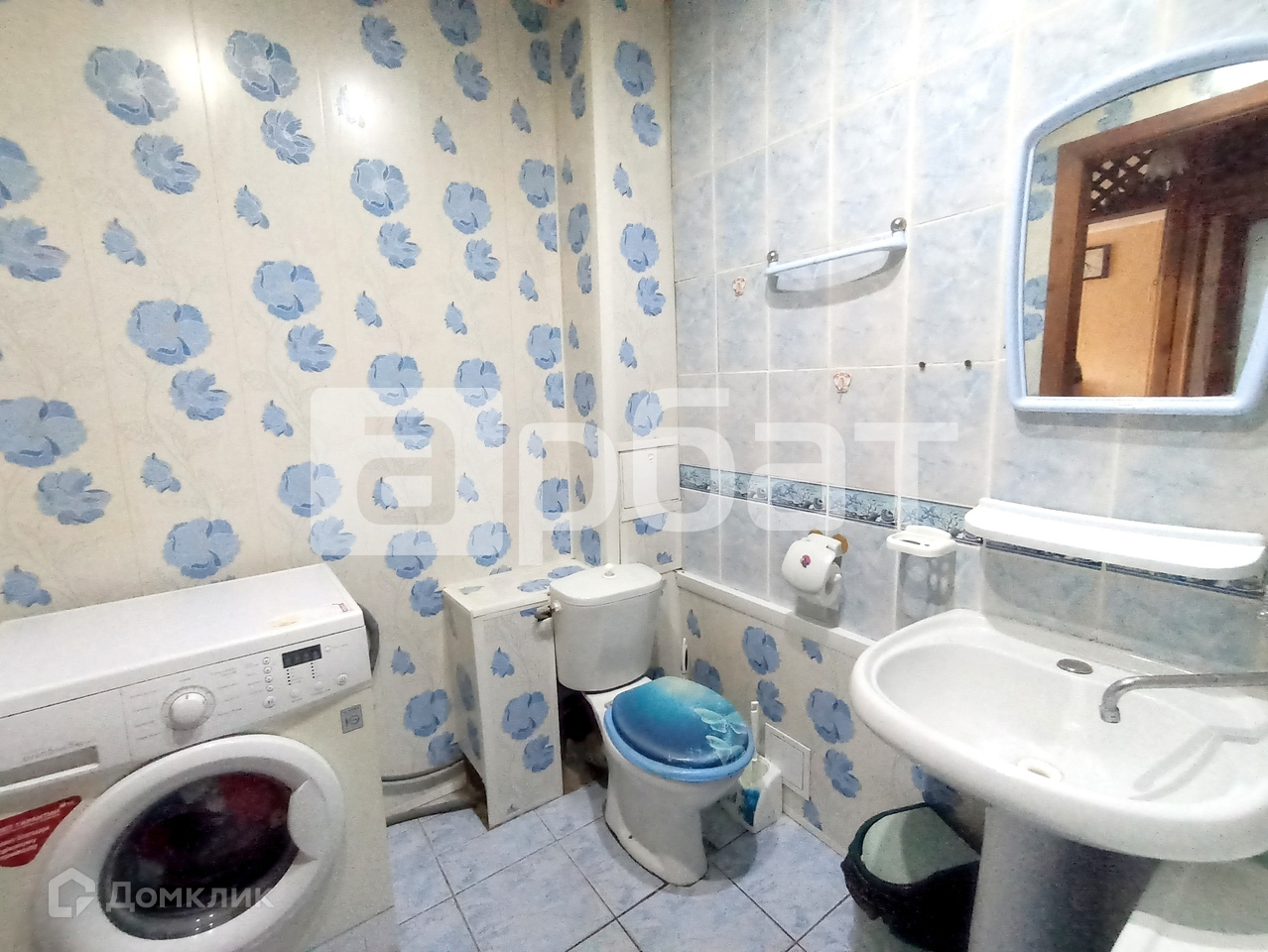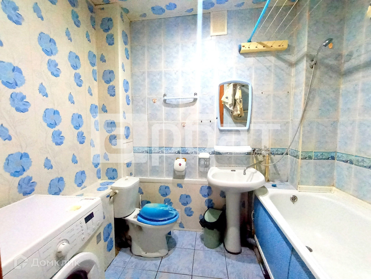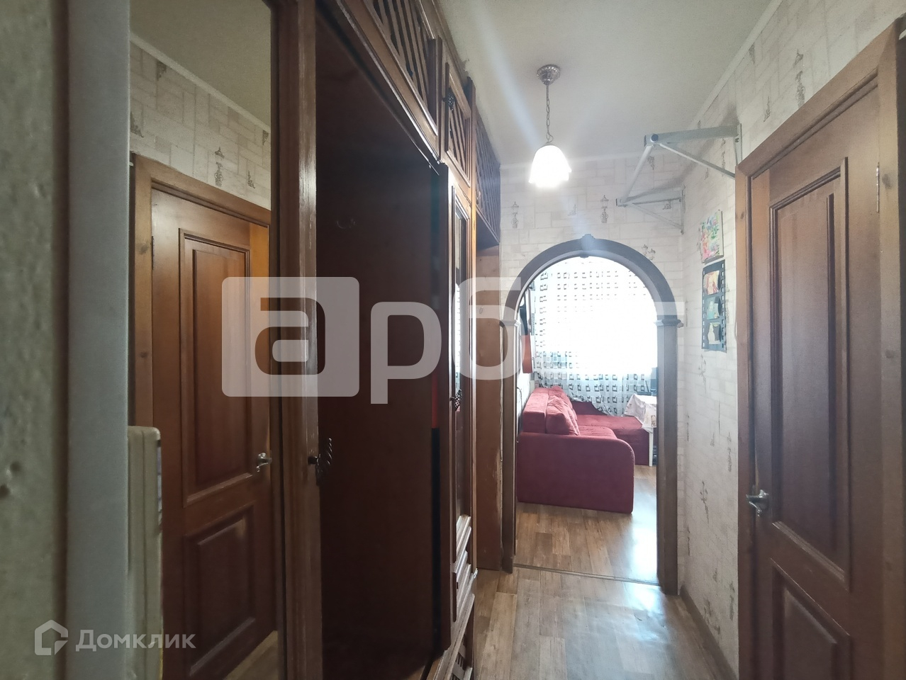 С/у совмещен, в плитке. Компактная прихожая с гардеробным шкафом.