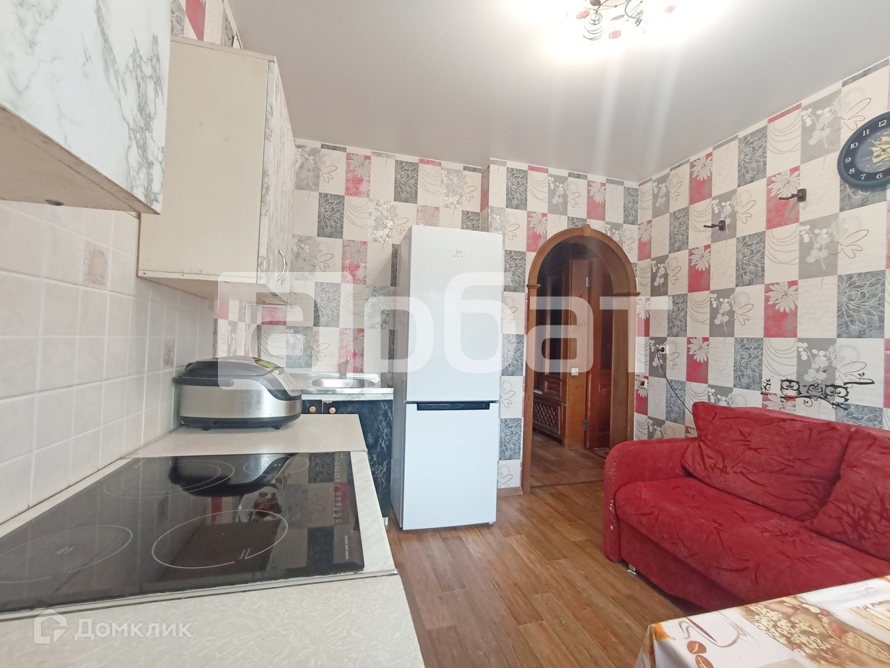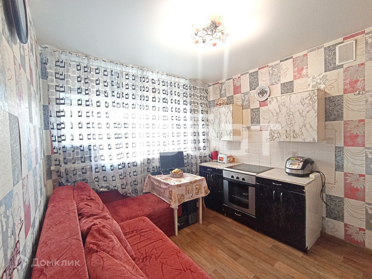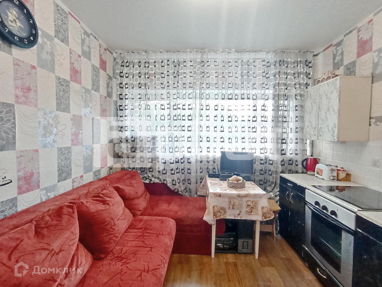 Общая площадь 36 м2. Жилая комната 18м2. Большая кухня - 10 м2  - поместится все необходимое! Гарнитур остается.