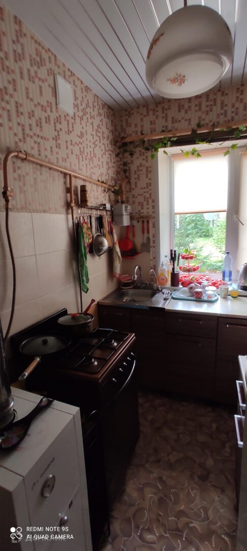 квартира в двухэтажном жилом доме. Квартира расположена на первом этаже. Общая площадь квартиры составляет 35,8 кв.м. Кухня 5,2 кв.м, гостиная 15 кв.м., спальня 7,9 кв.м. Санузел совмещенный 4 кв.м. Комнаты в квартире изолированны. Окна все ПВХ.Квартира очень светлая, тёплая и просторная.