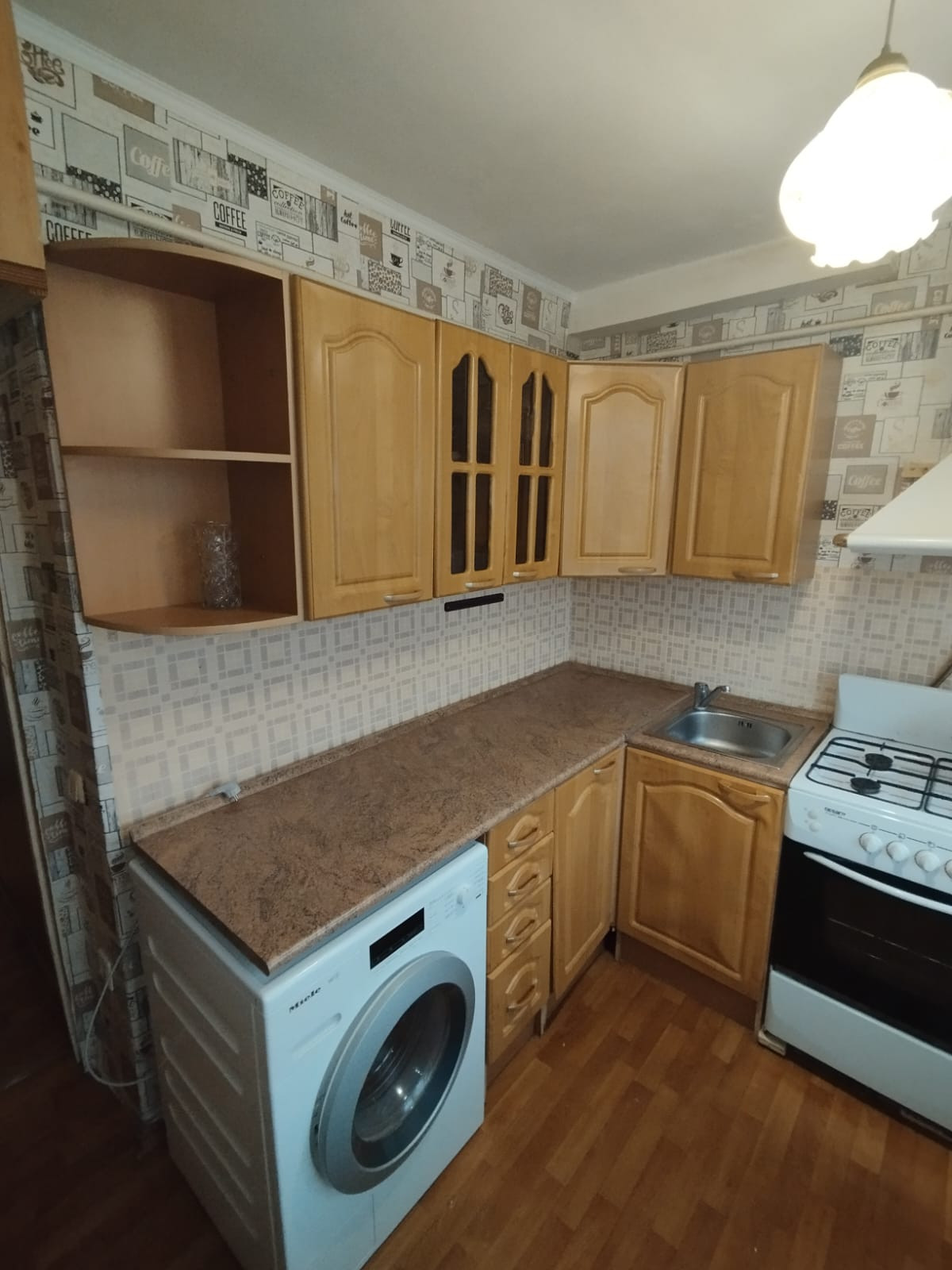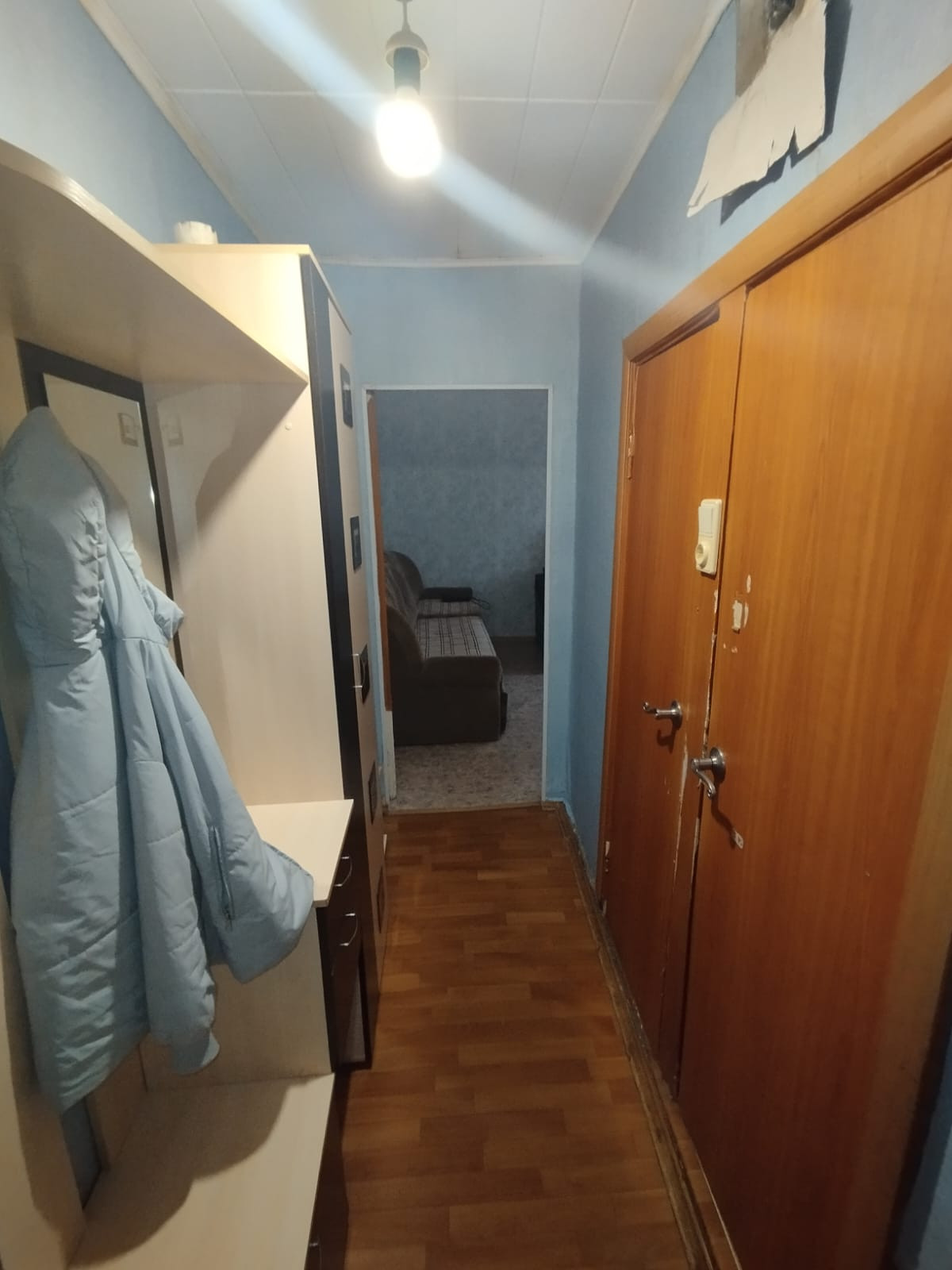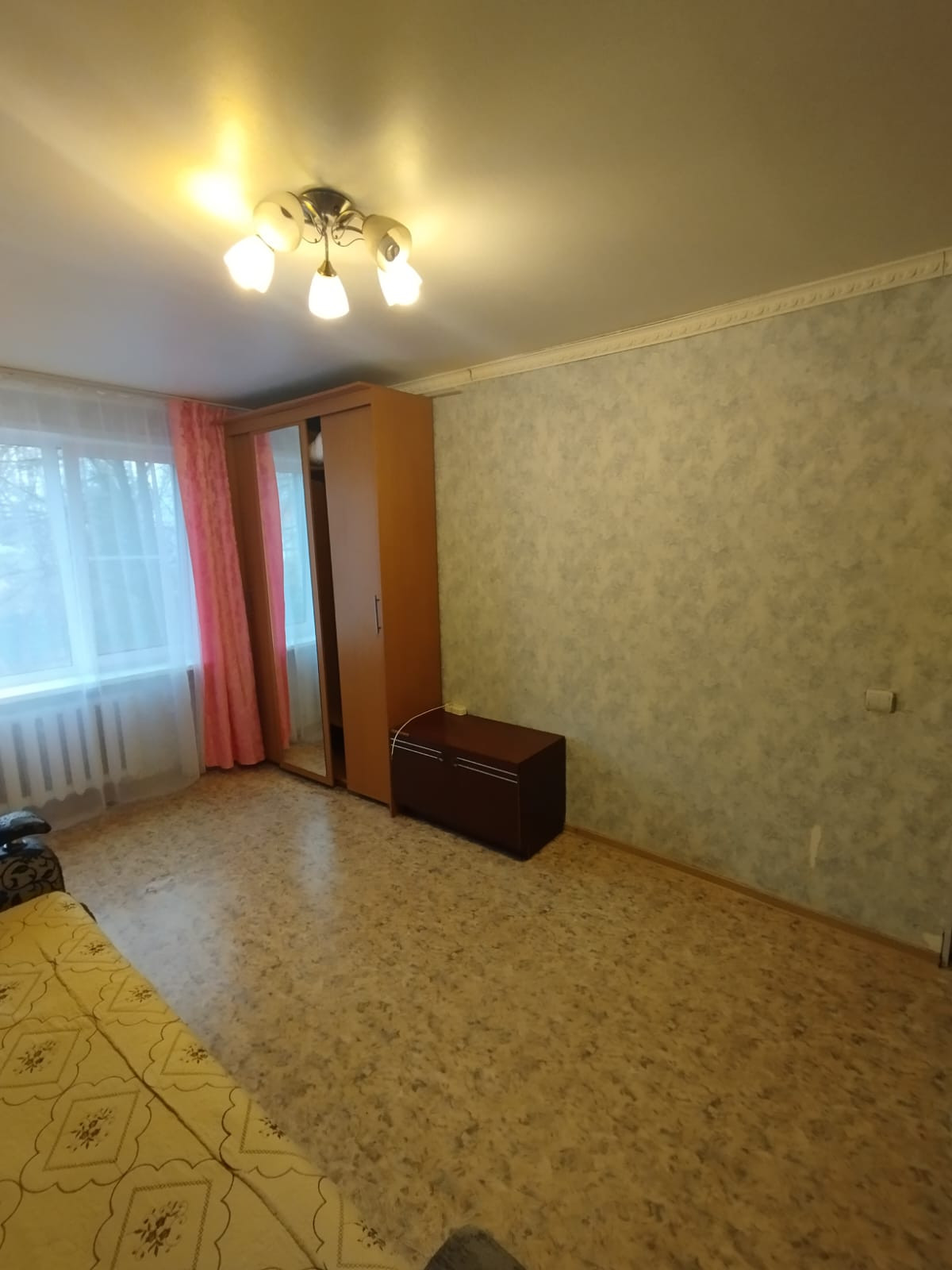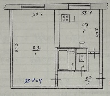 Общая площадь 32.5кв.м., комната 17кв.м., кухня 8кв.м., санузел раздельный, без балкона, не угловая.