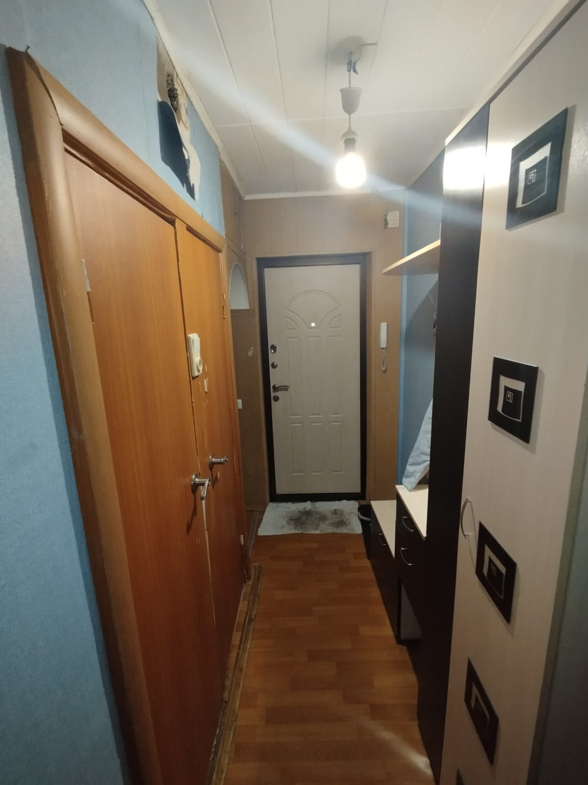 Квартира теплая, сухая, светлая, солнечная сторона, без посторонних запахов. Состояние квартиры видно на фото, хорошая входная железная дверь, окна ПВХ, установлены счетчики на воду, обще домовой счетчик на отопление. В подъезде рядом с квартирой имеется своя кладовка, где можно хранить различные вещи, санки, коляски и др. Первый этаж высокий. Во дворе парковочные места. Рядом с домом ходят маршрутки. Покупателю в подарок остается кухонный гарнитур и водонагреватель.