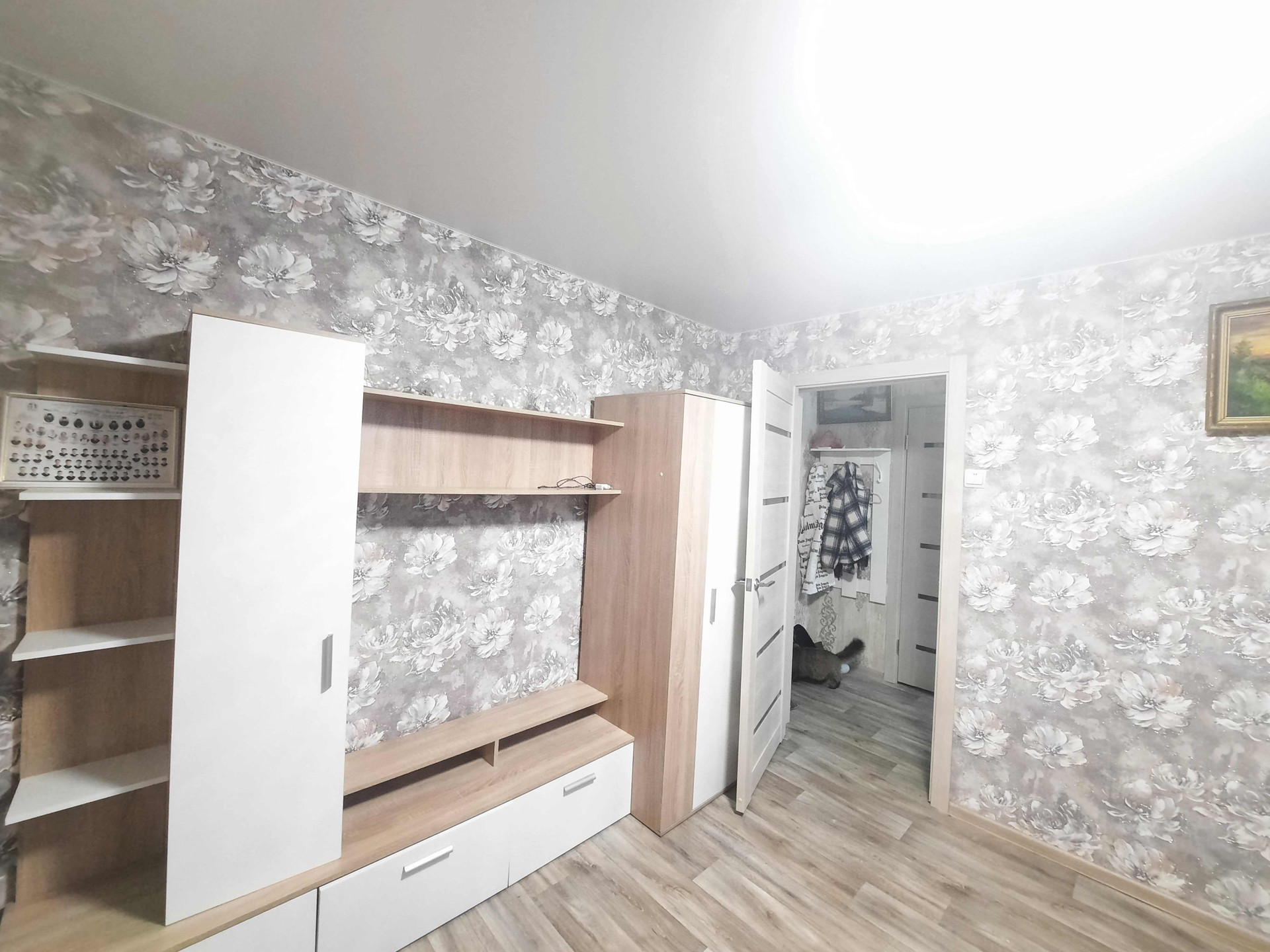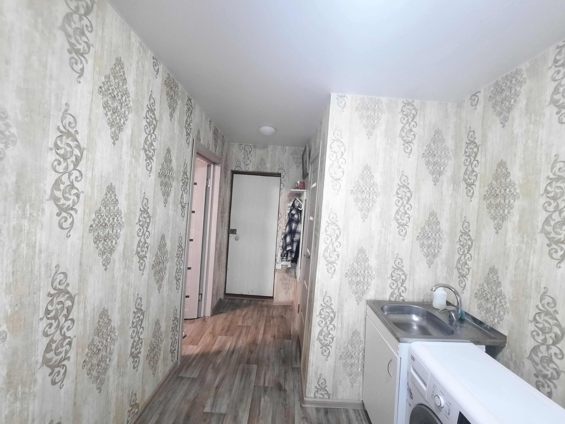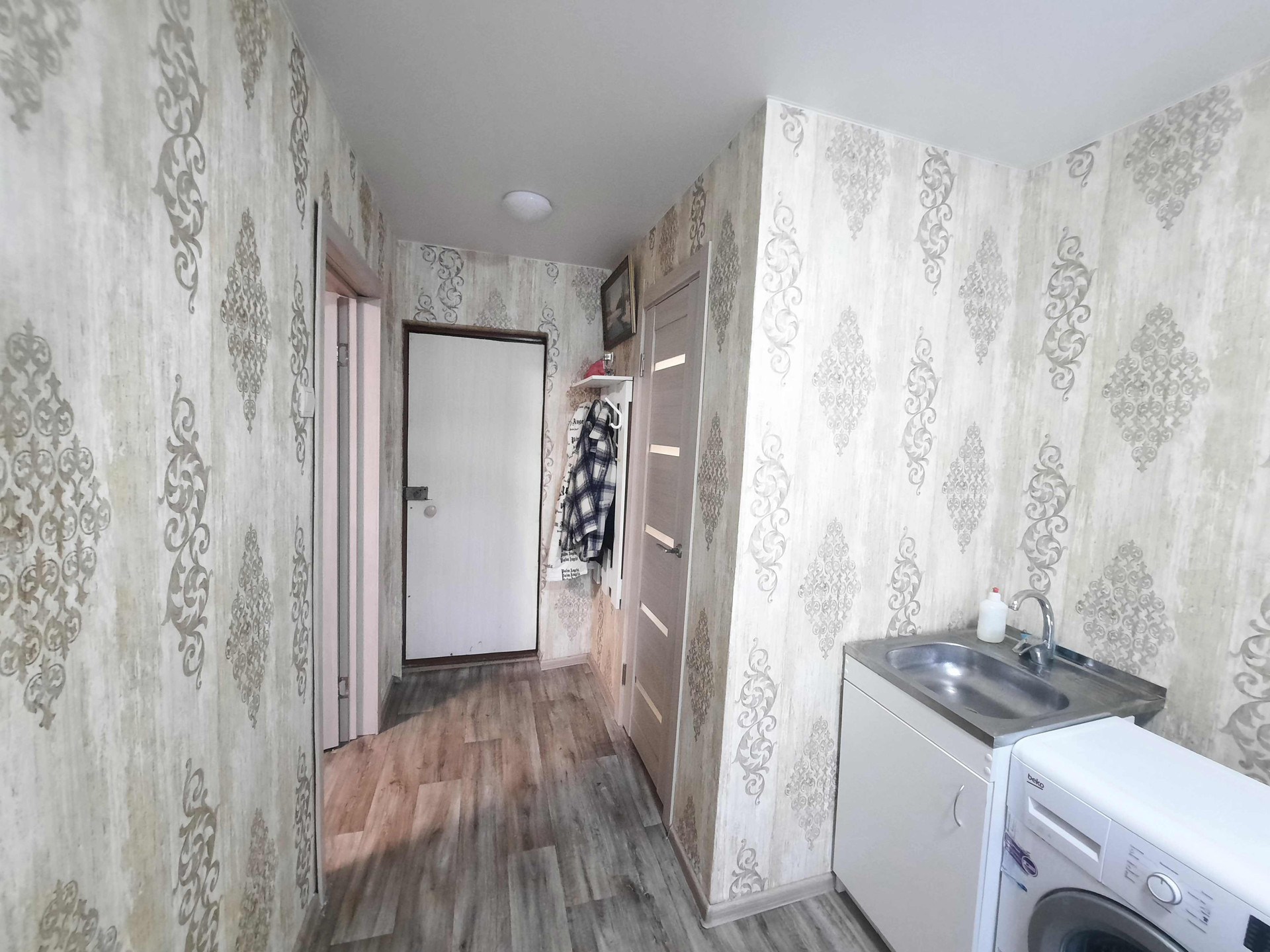 С/у совмещен. Компактная прихожая с карманом для гардеробного шкафа.