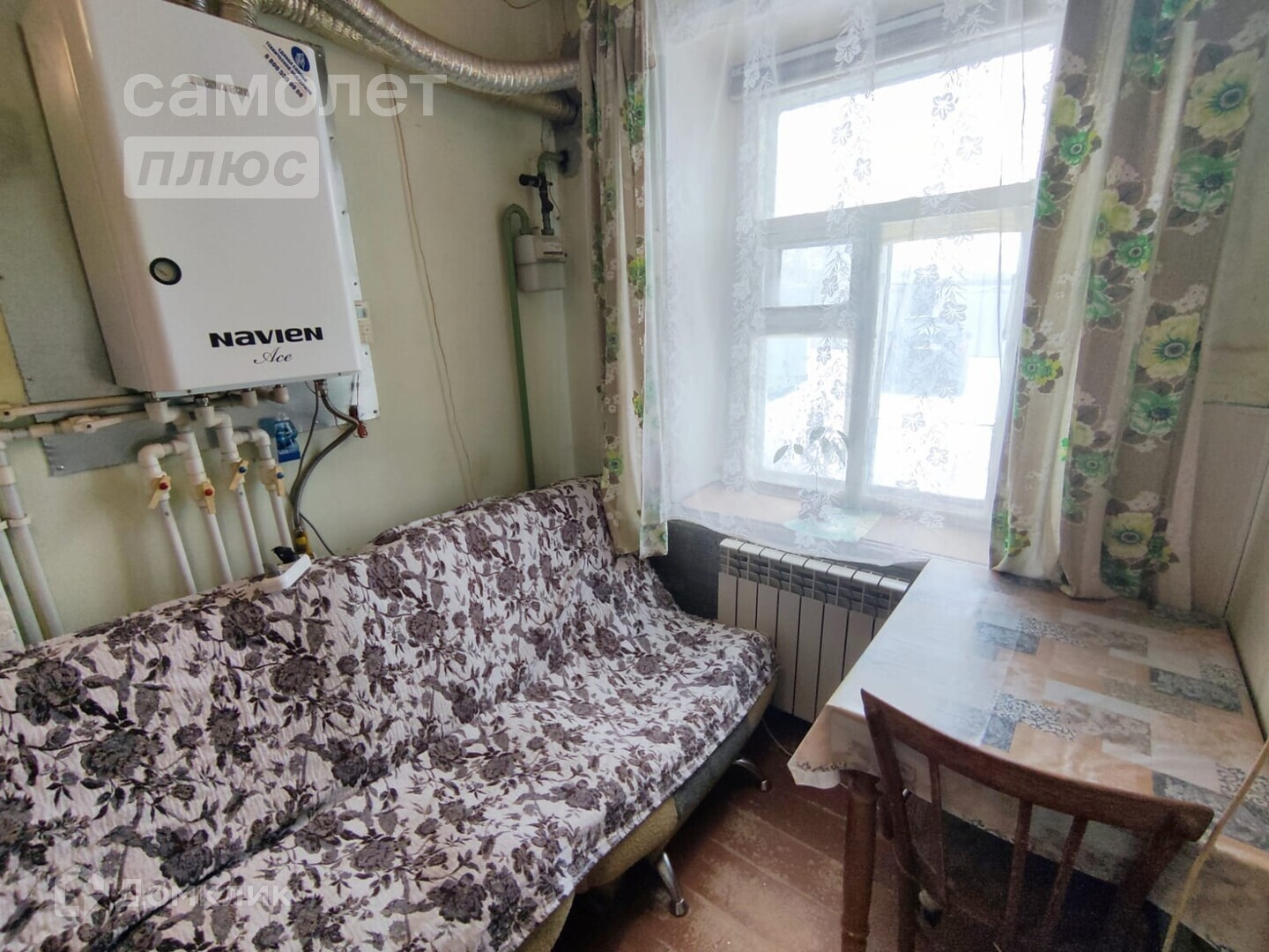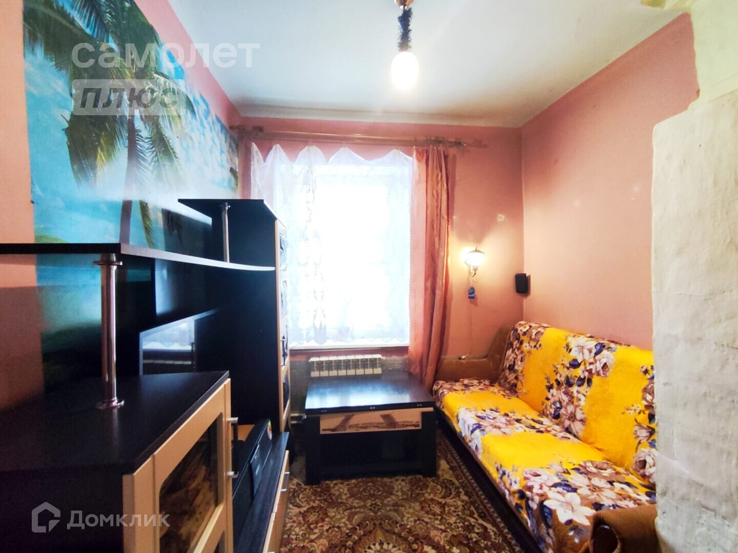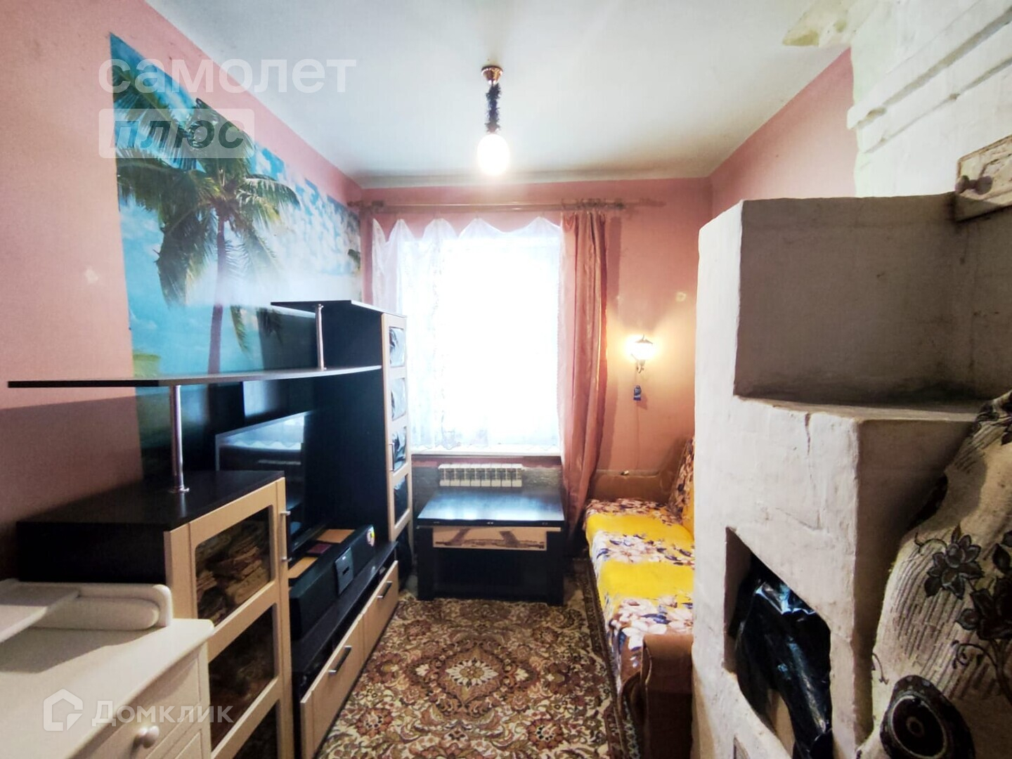 - В комнате печка, которую можно переоборудовать в камин