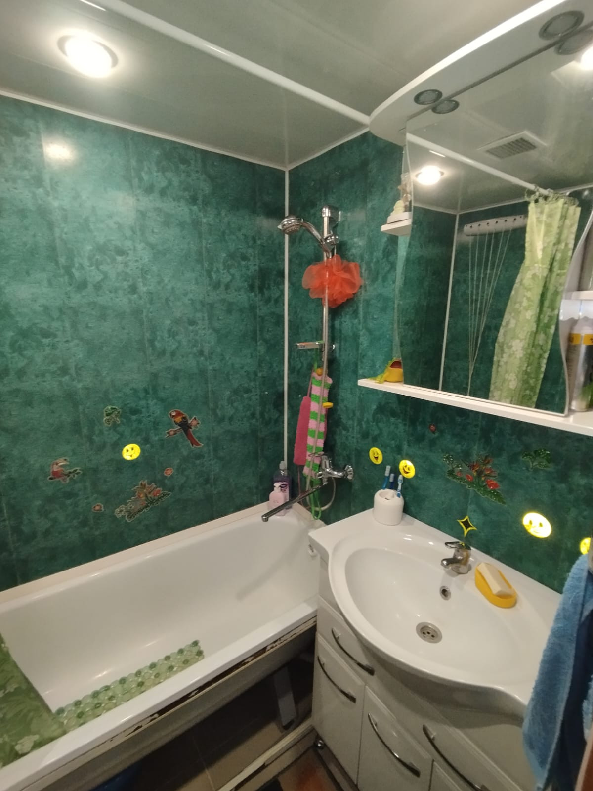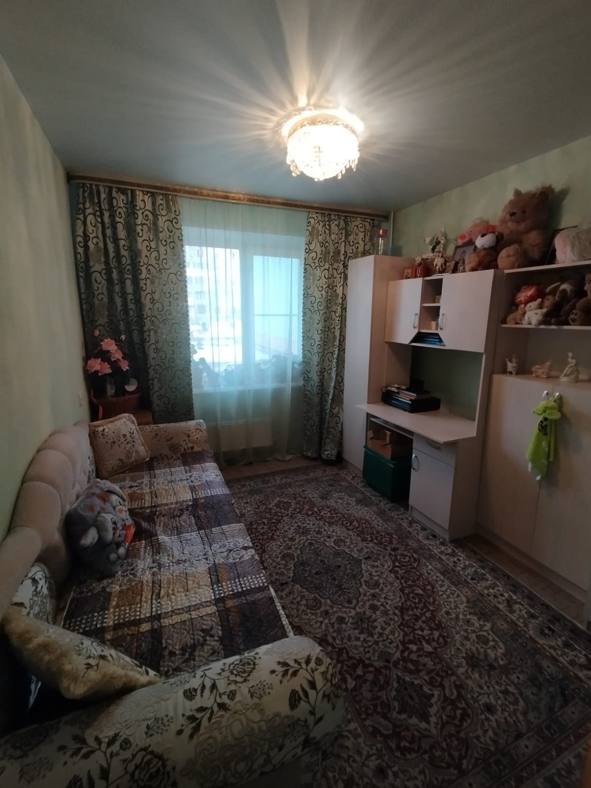 Квартира теплая, сухая, светлая, без посторонних запахов, чистая, аккуратная. Этаж высокий. Железная входная дверь, окна ПВХ выходят на обе стороны дома, потолки натяжные, подвесные, на полу линолеум, лоджия застеклена, отделана вагонкой, счетчики на воду, в туалете установлен водонагреватель на случай отключения горячей воды.