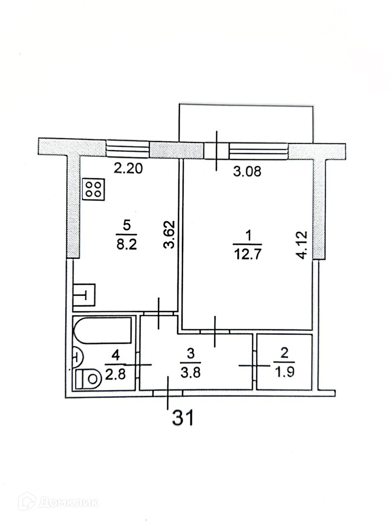 Жилая площадь 12.7 м2