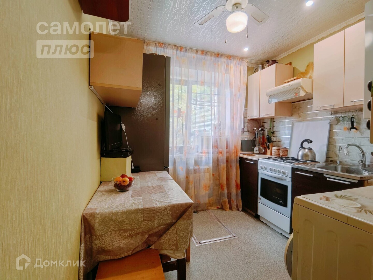 Ремонт косметический. На стенах обои, на полу линолеум. Санузел в плитке. Окна все ПВХ, частично установлены натяжные потолки, счетчики на воду и газ. По договоренности оставим часть мебели.