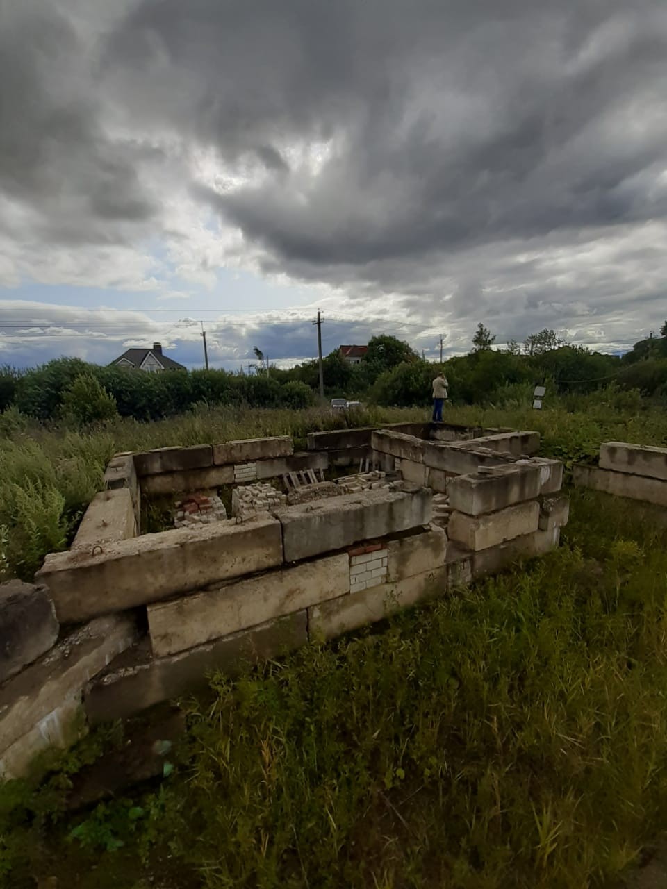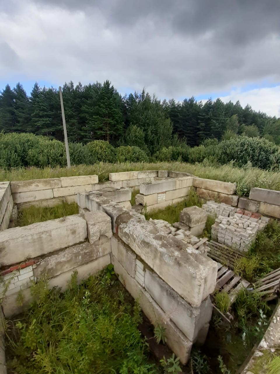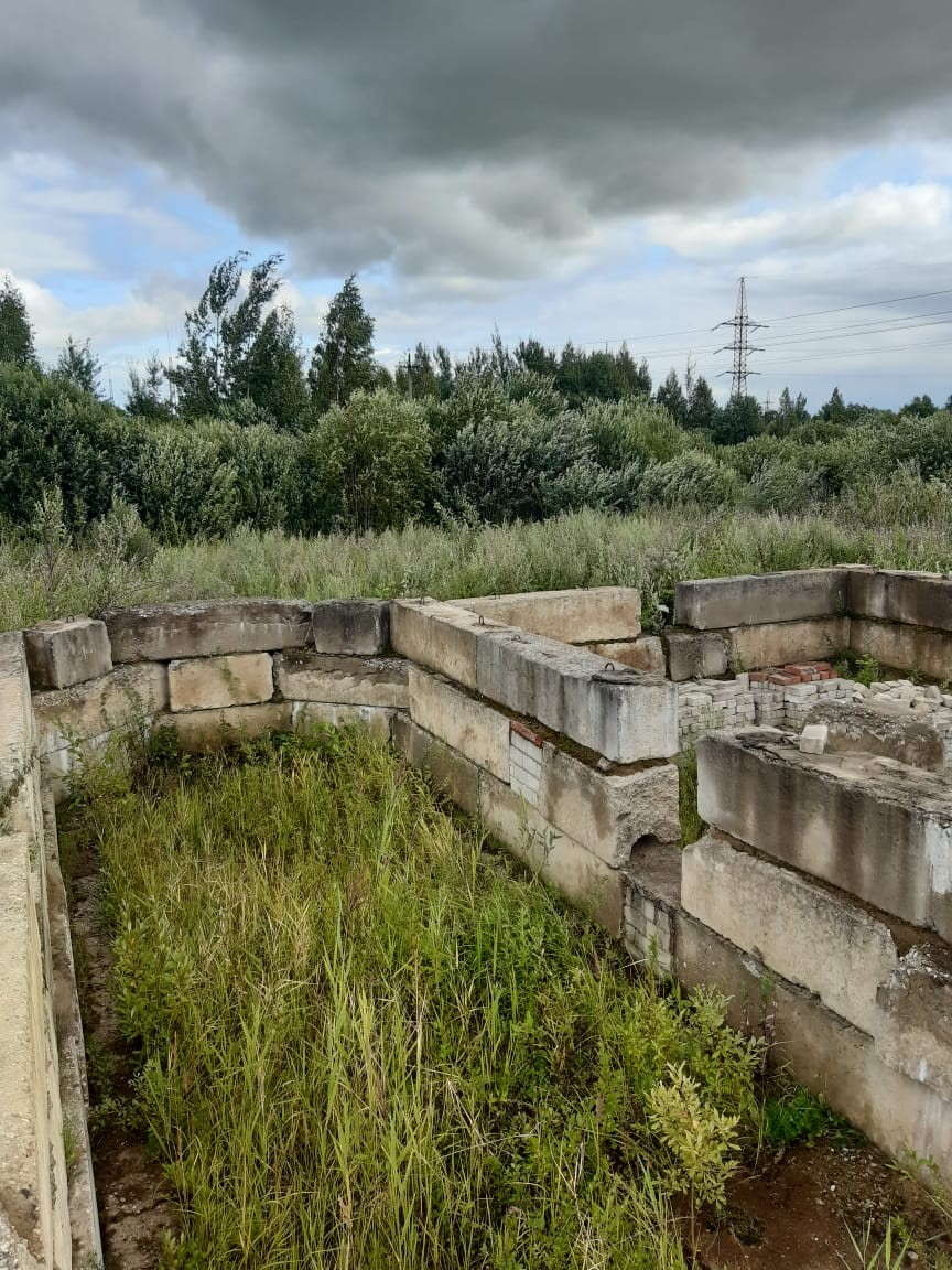 Продам земельный участок 12сот. с отстоявшимся фундаментом из бетонных блоков на 120кв.м. застройки. Имеются документы на строительство, оформлена незавершенка, имеется проект дома.