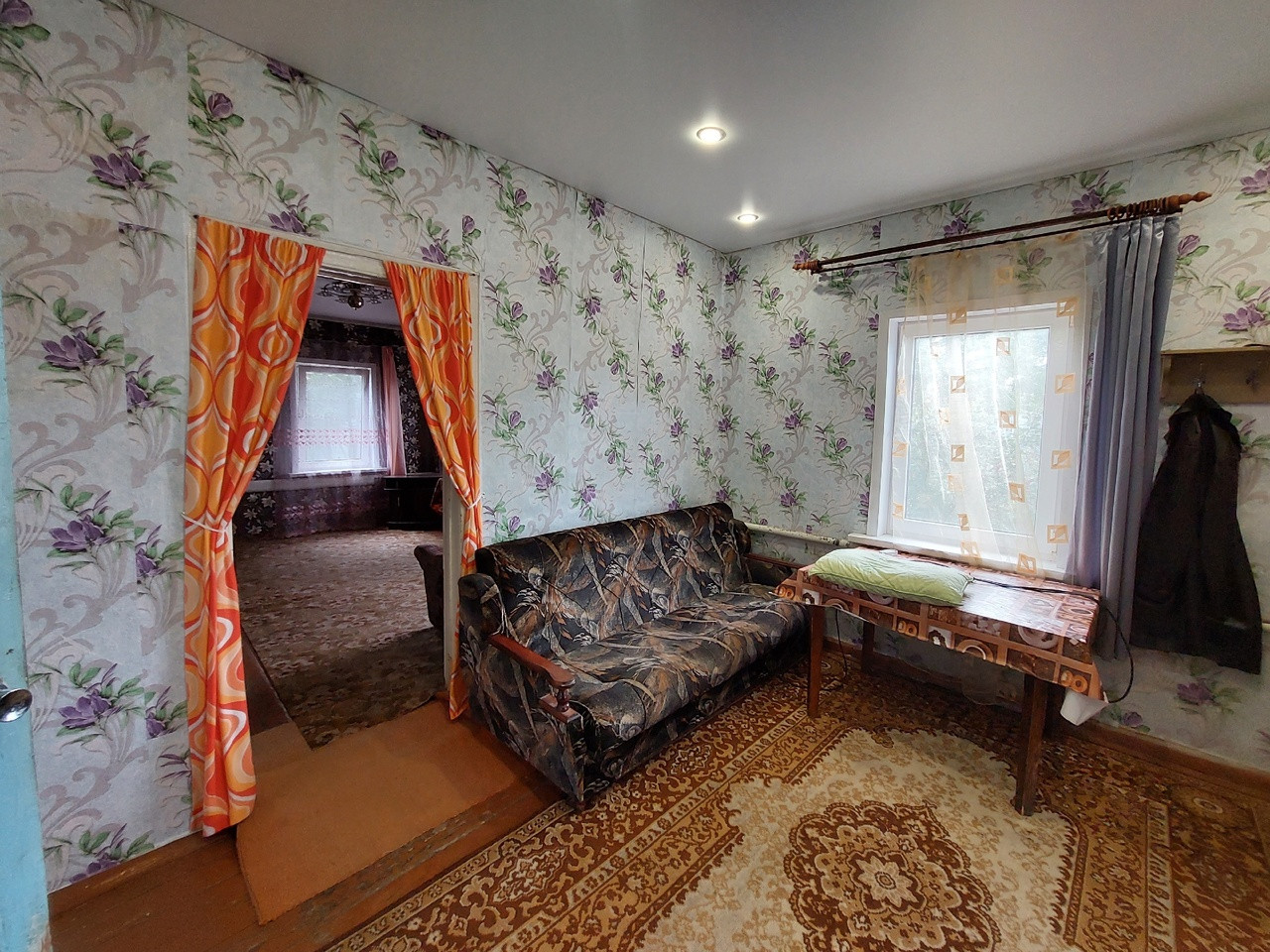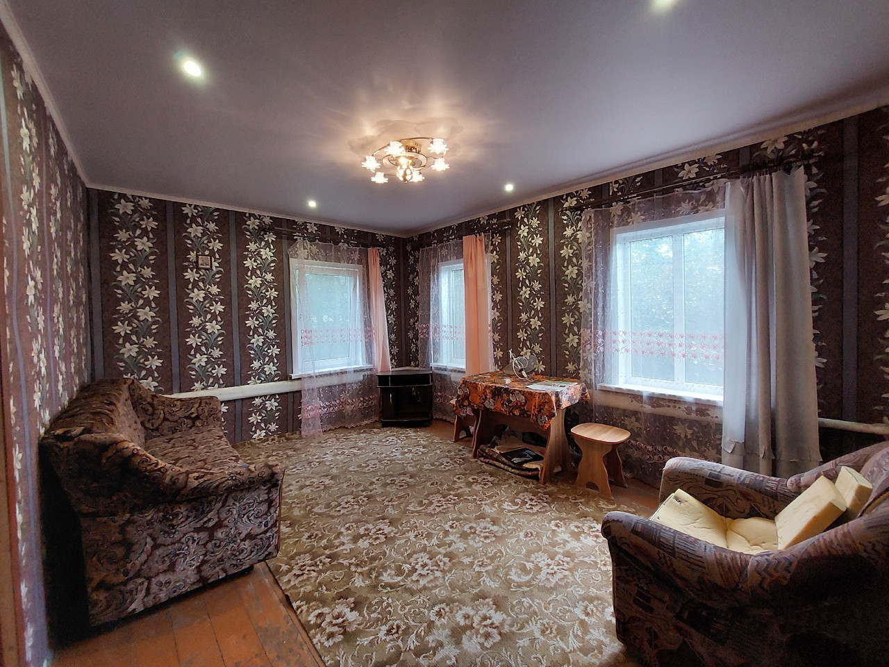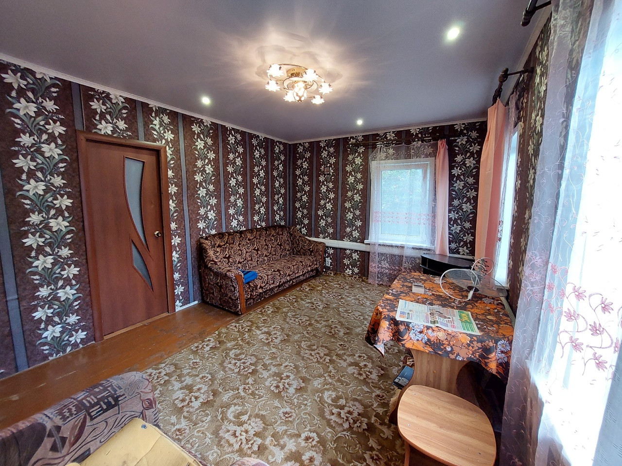 В доме частично сделан ремонт, натяжные потолки в двух комнатах, поклеяны свежие обои, установлены пластиковые окна.