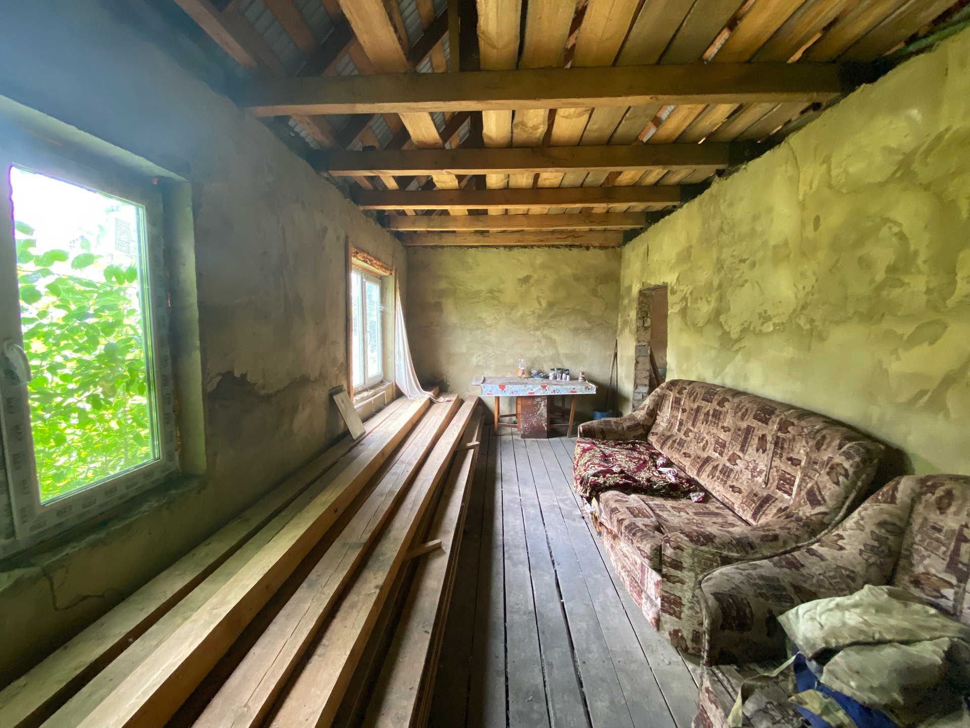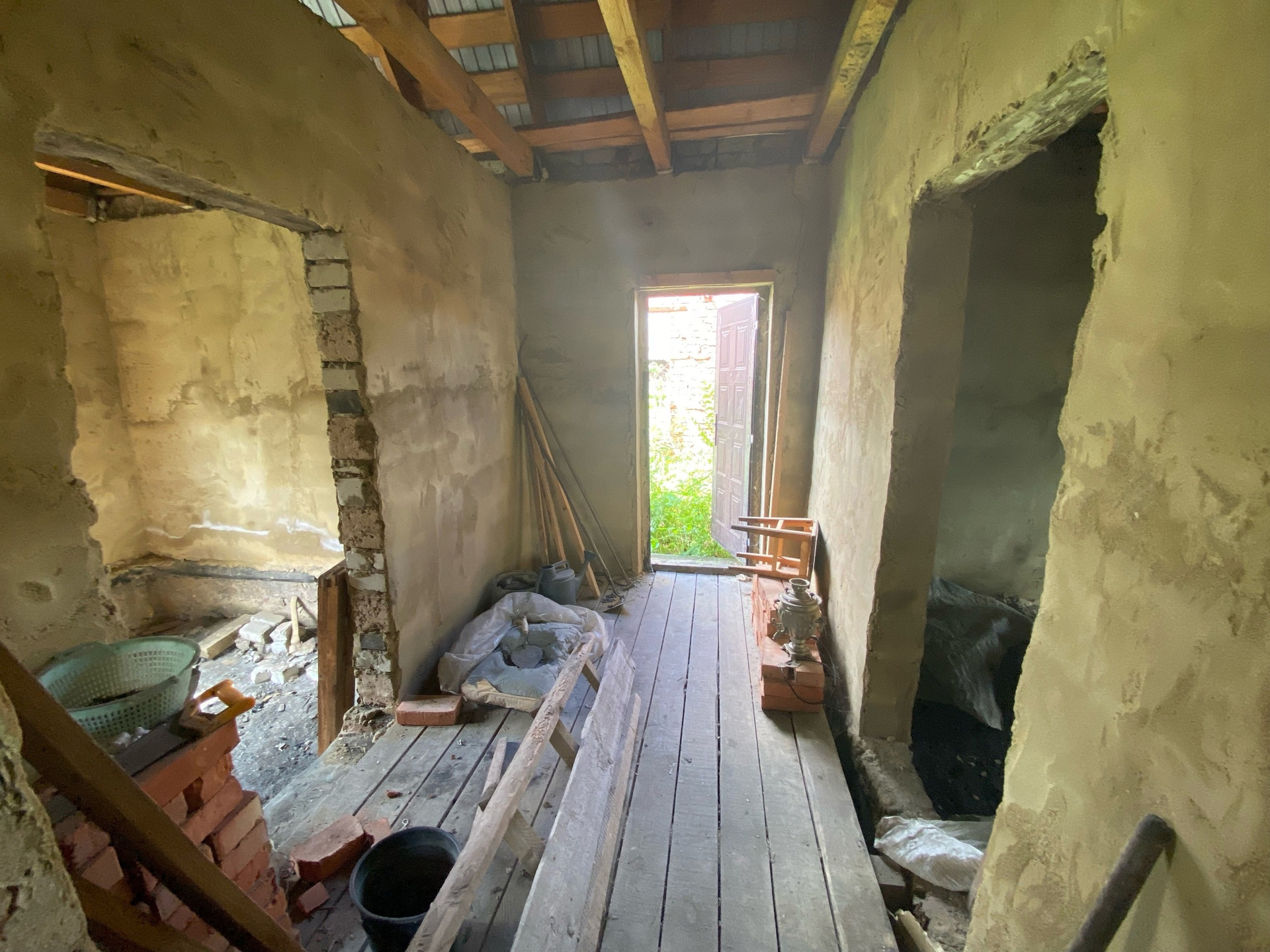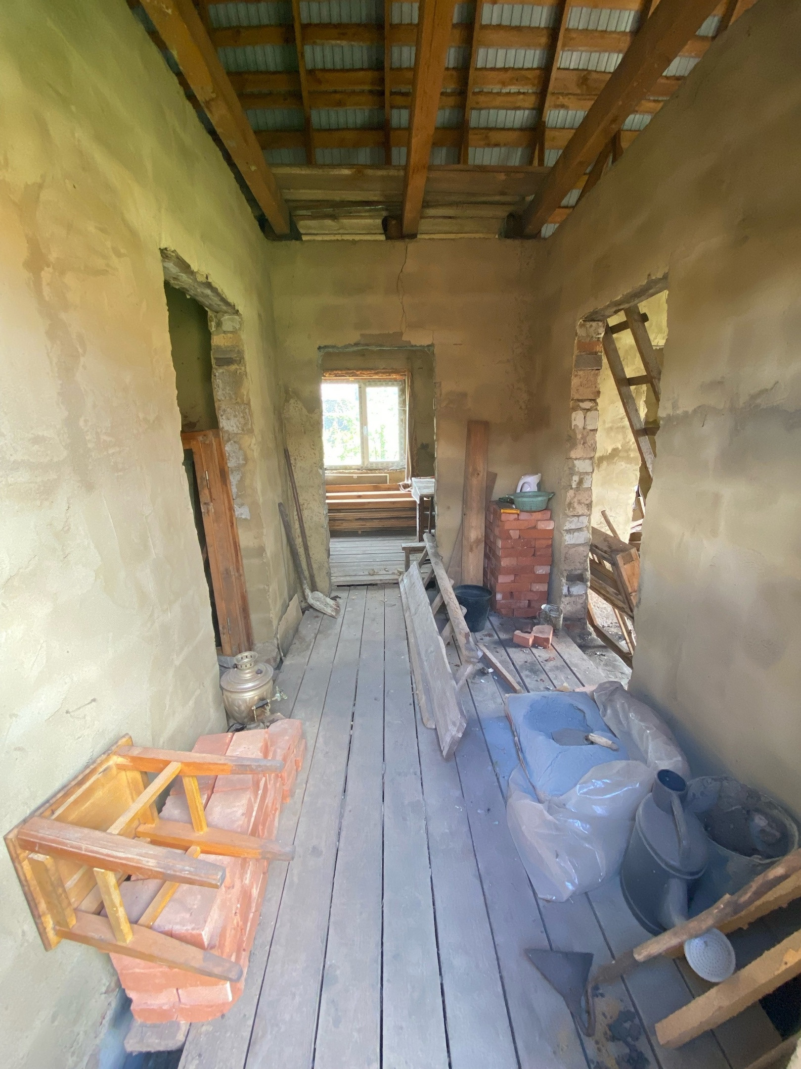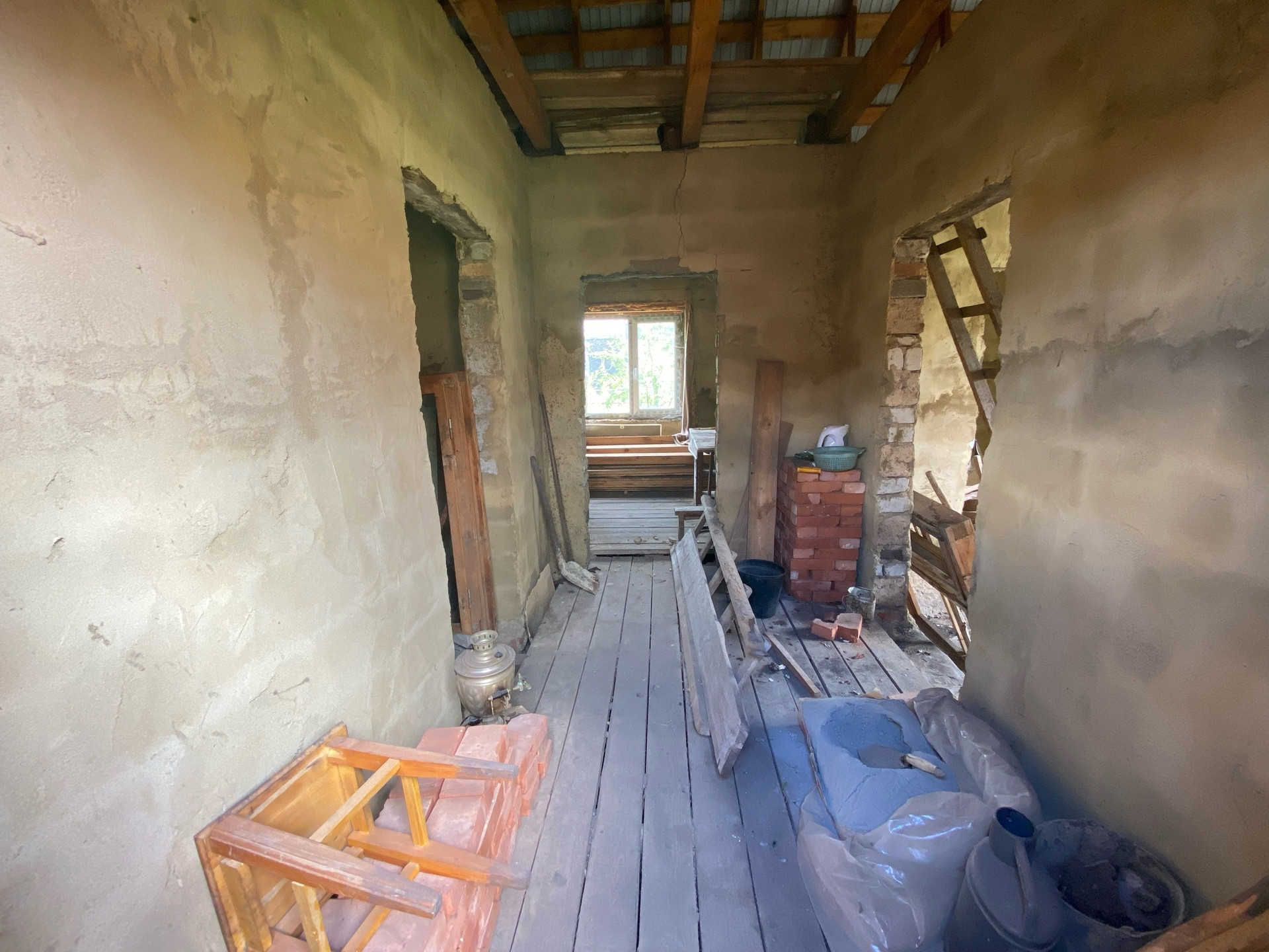 В доме просторный коридор, четыре изолированные комнаты, не достроенная веранда