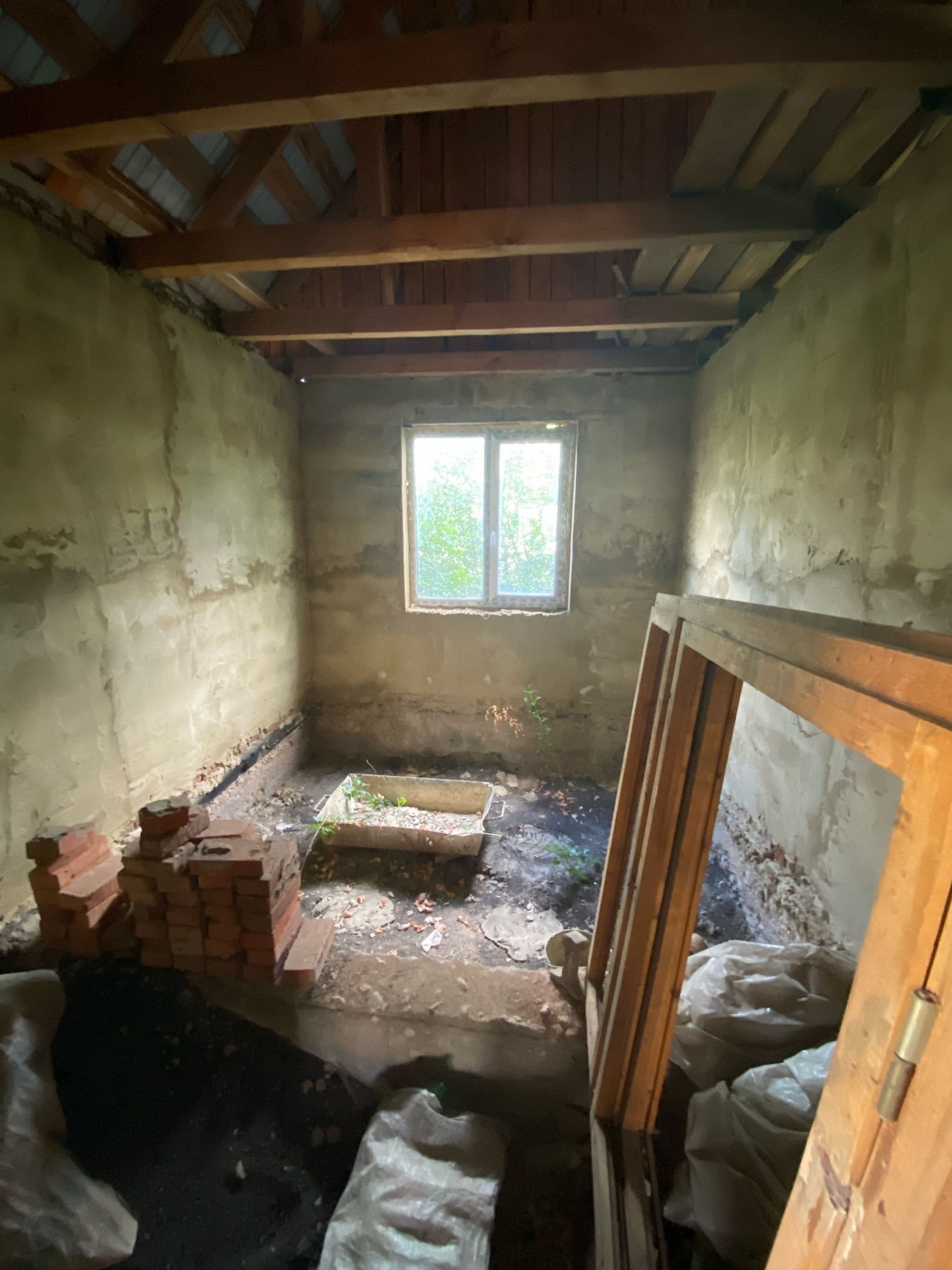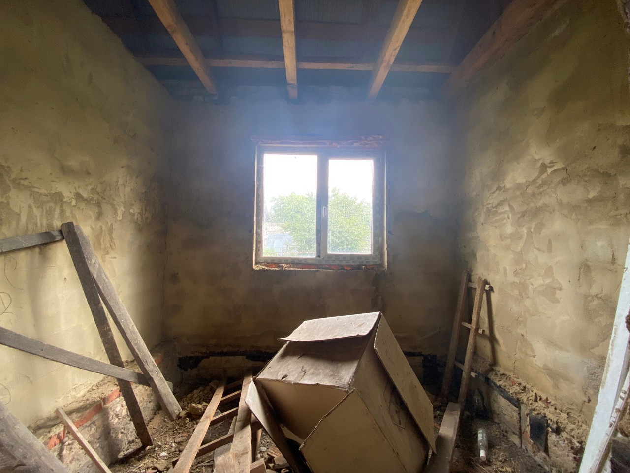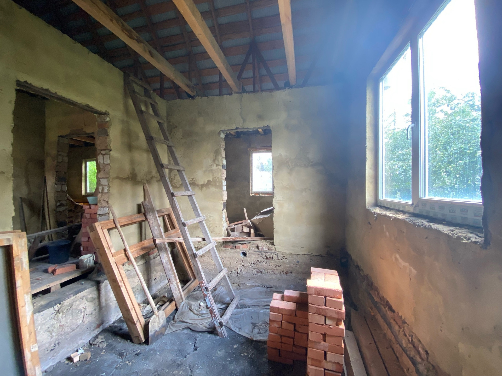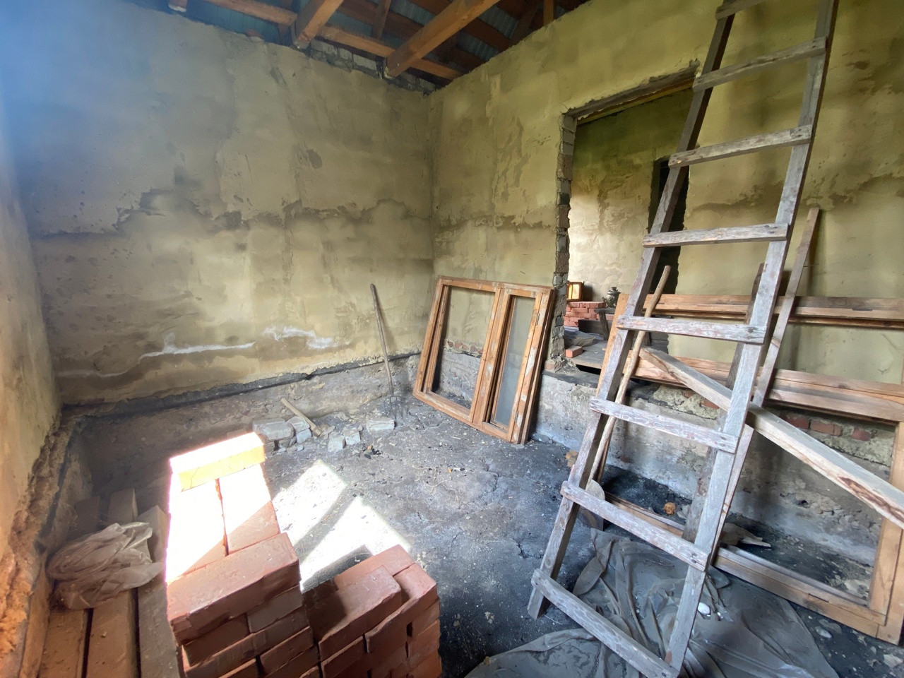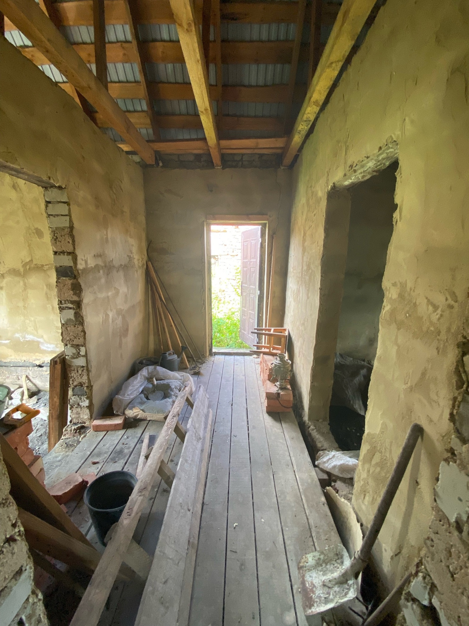 В доме просторный коридор, четыре изолированные комнаты, не достроенная веранда