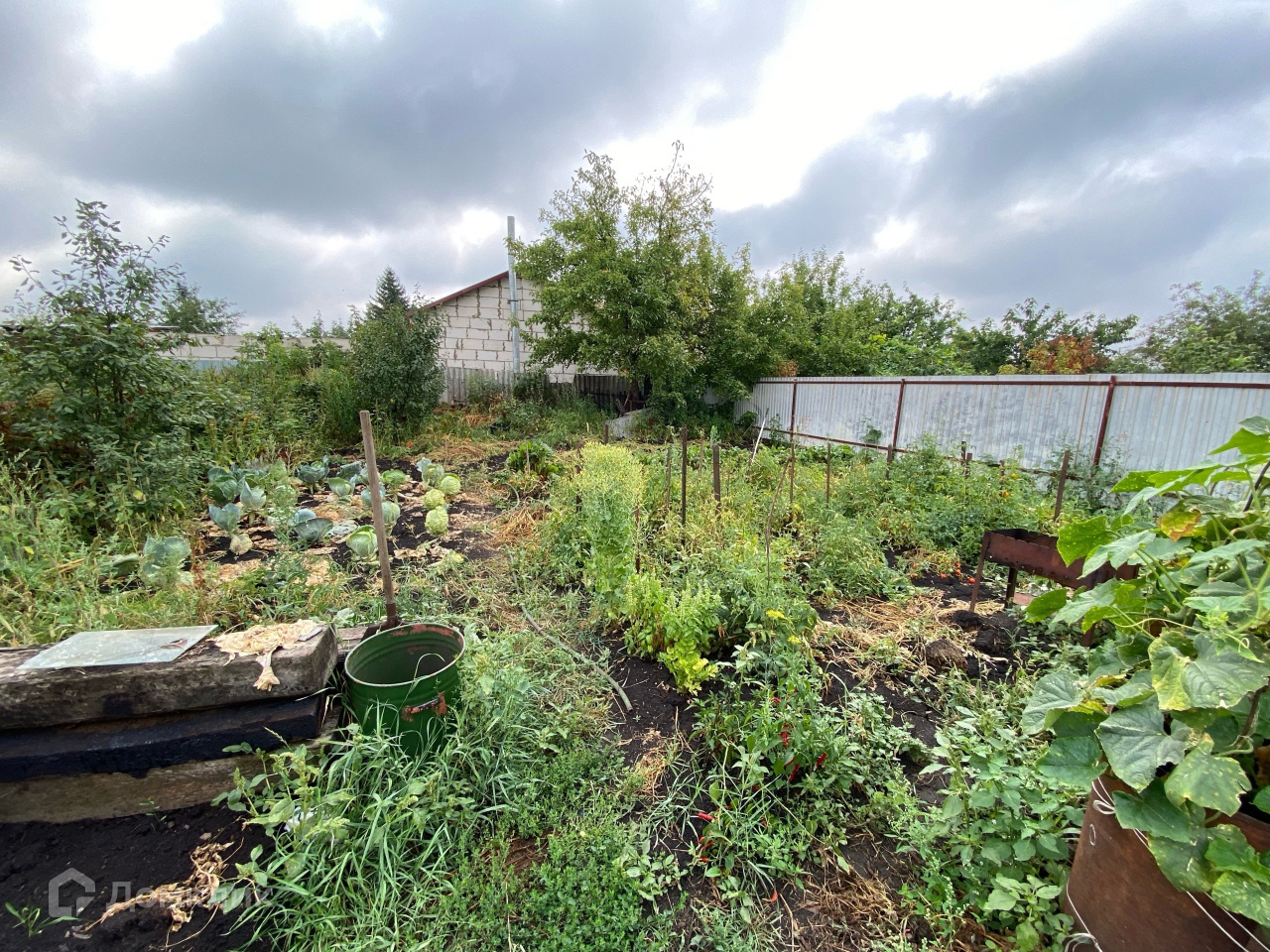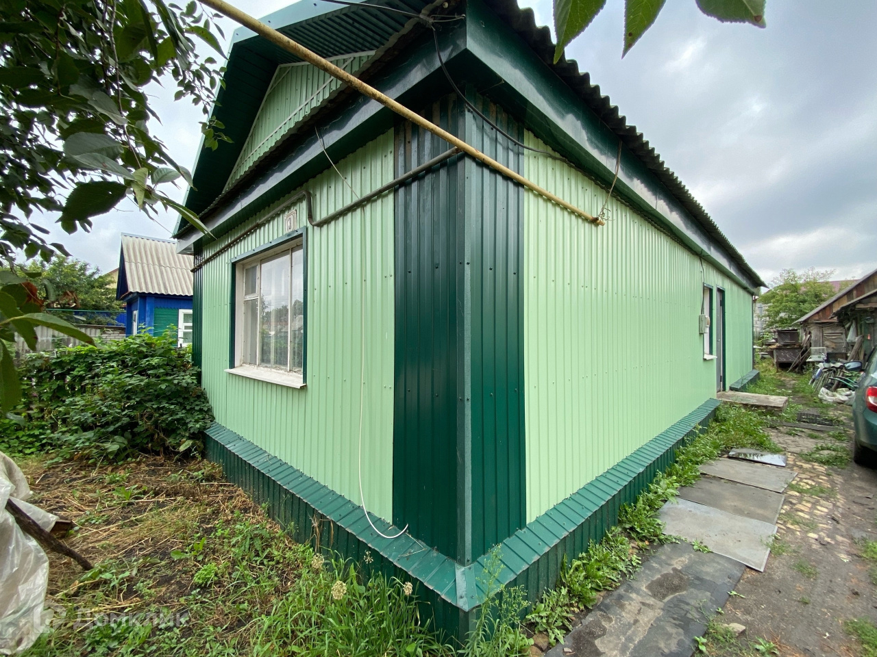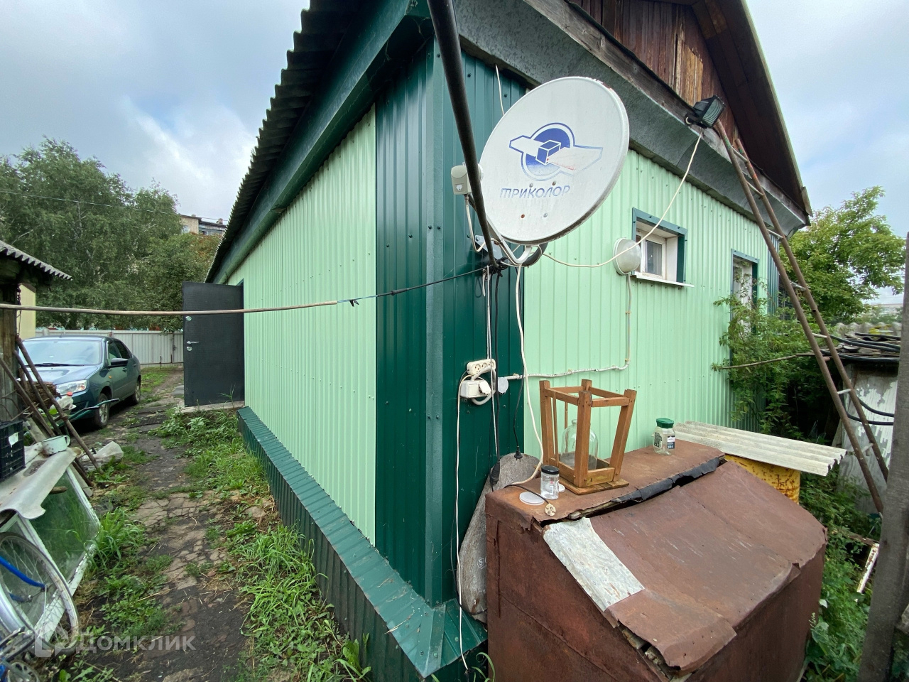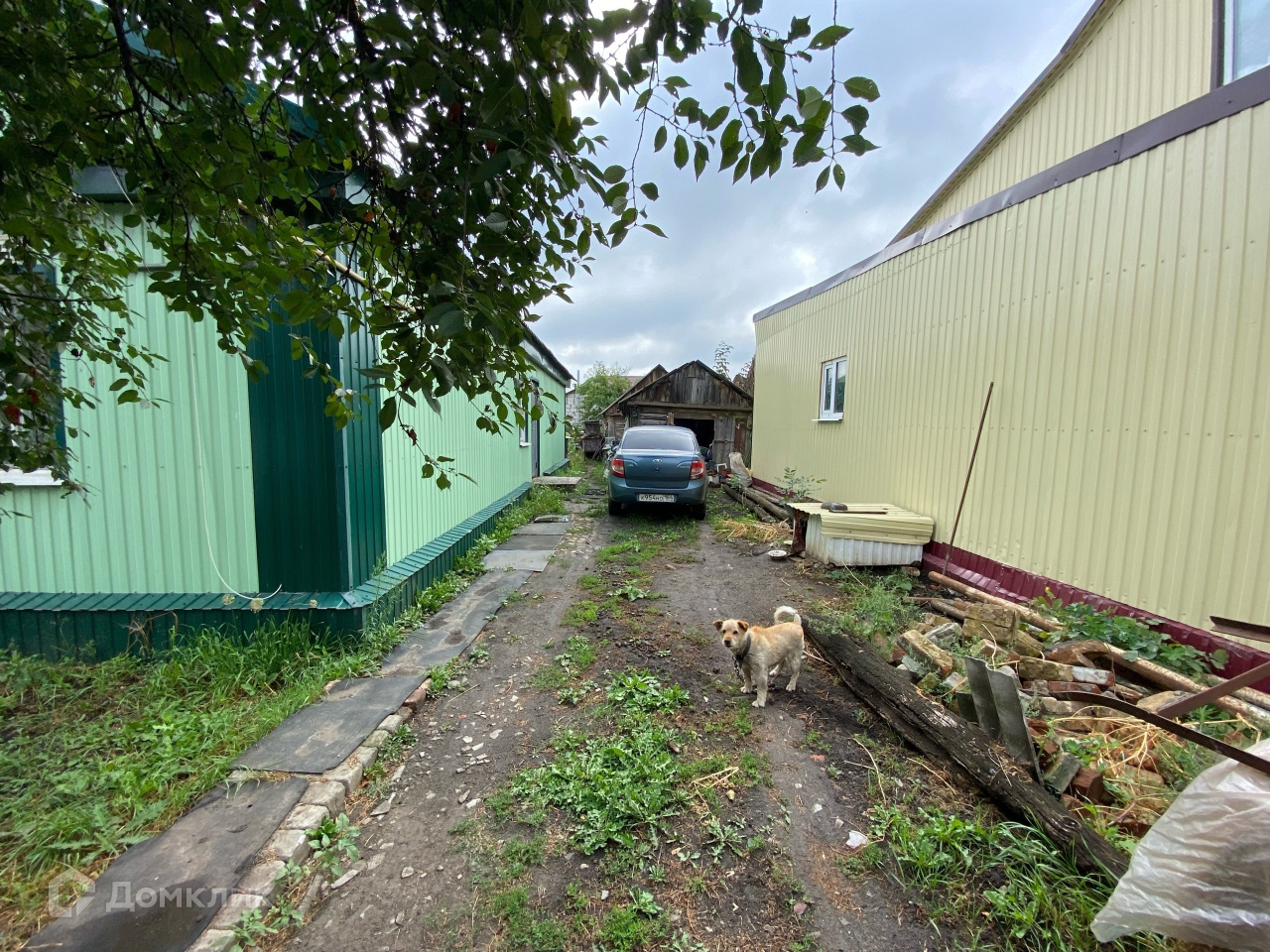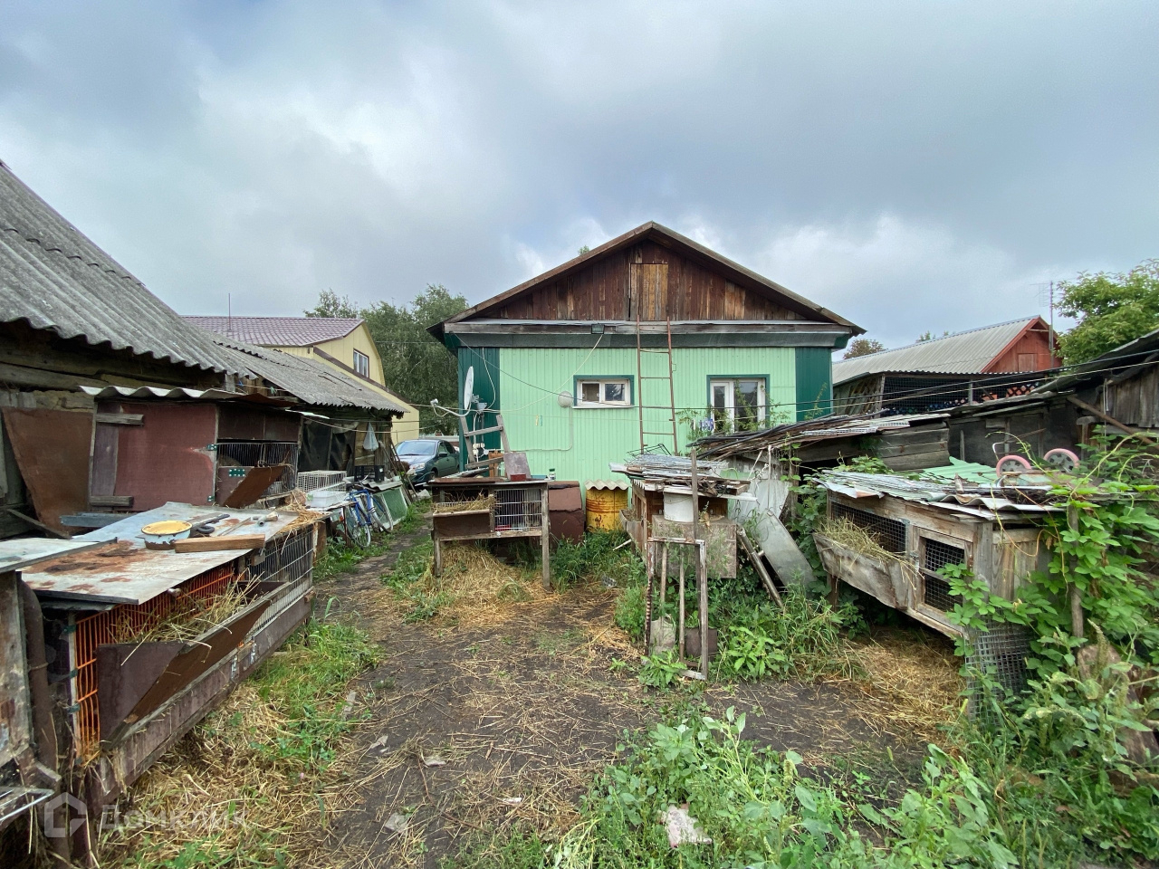 На территории есть место для машины, дворовые постройки и огород.