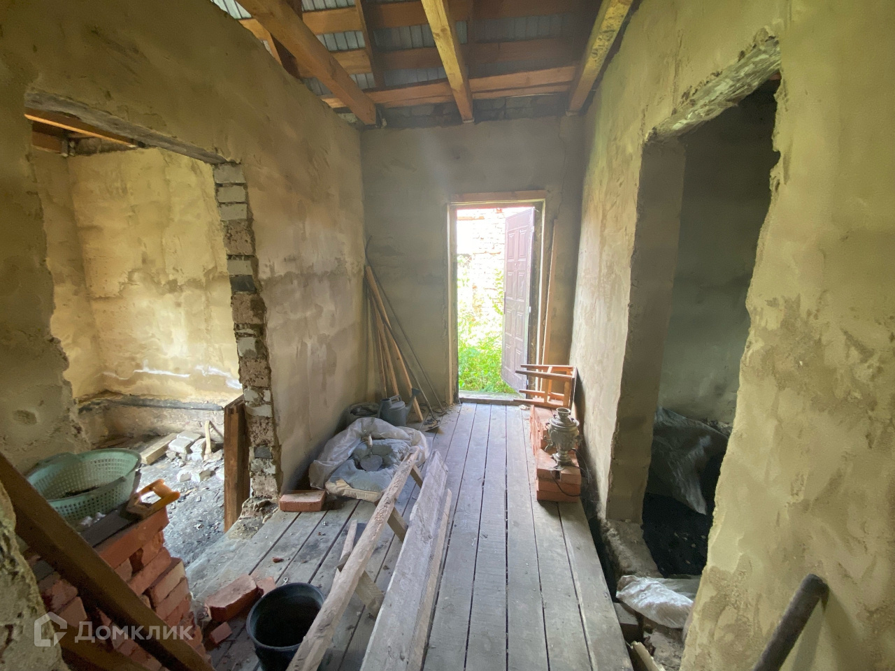 В доме просторный коридор, четыре изолированные комнаты, не достроенная веранда
