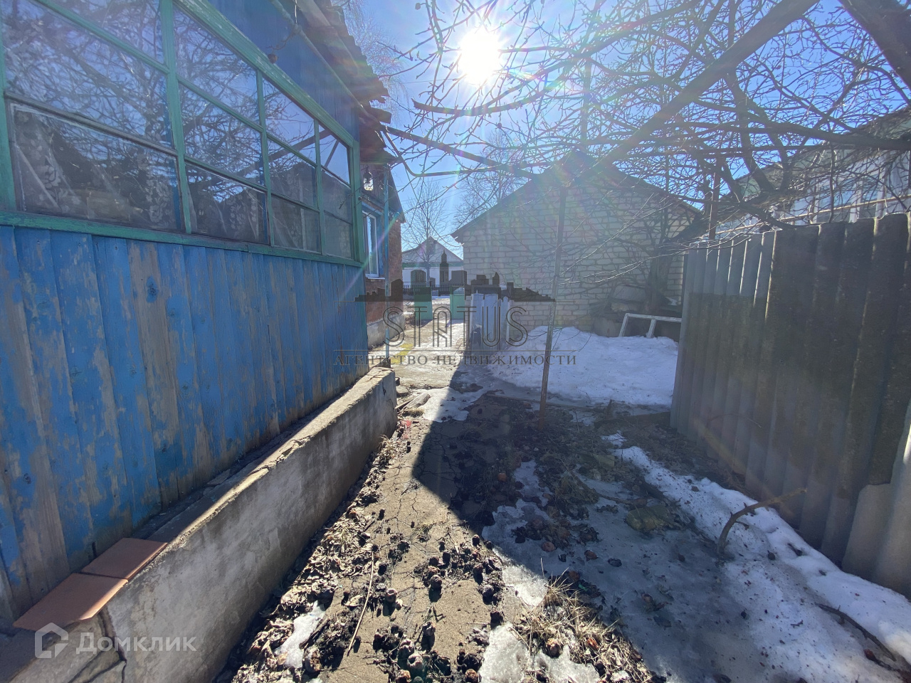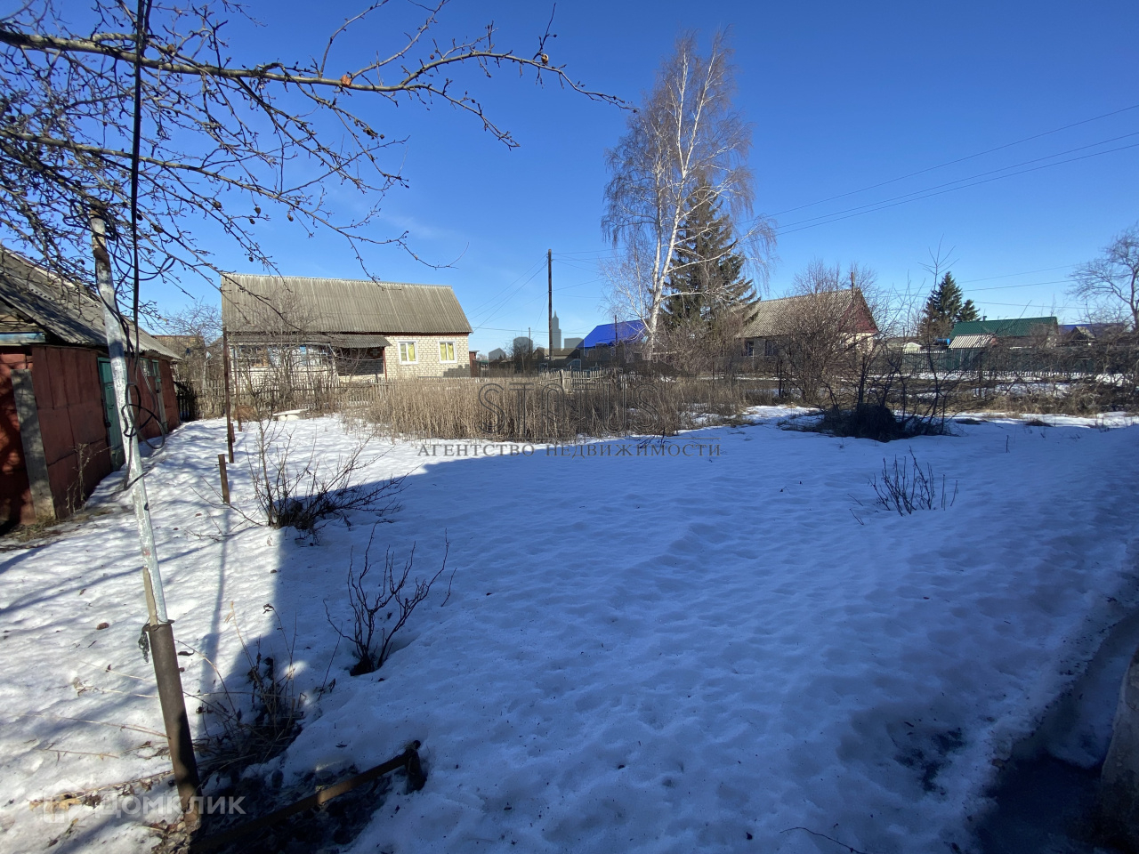 На участке сарай,гараж, плодовые деревья.