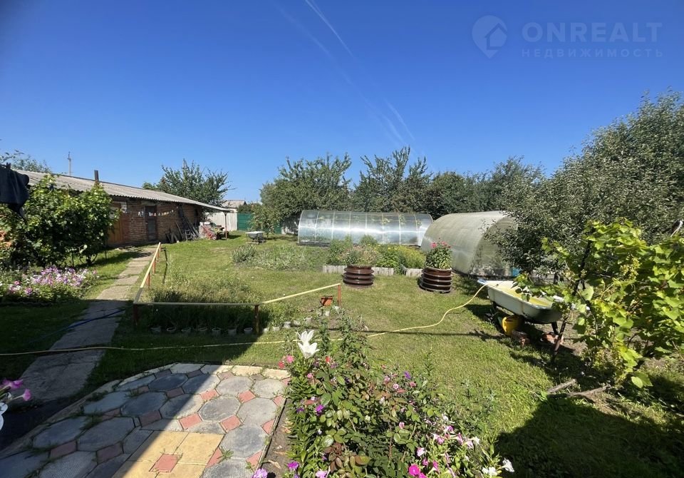Во дворе дома кирпичные гараж, сарай, баня. Ухоженный участок, плодовые деревья и кустарники: яблоня, абрикос, черешня, вишня, малина, клубника, смородина, виноград .
