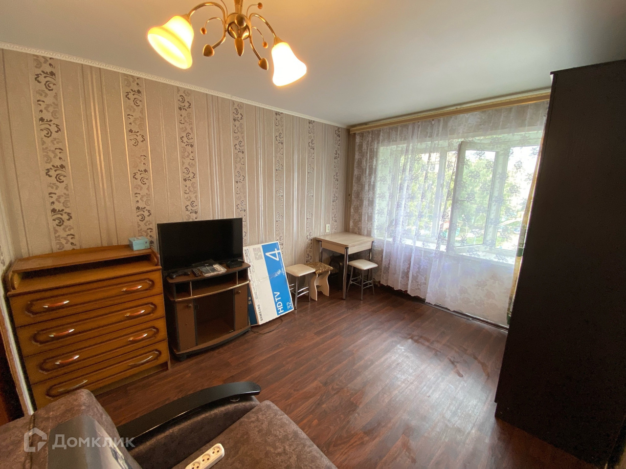 Сделан косметический ремонт: натяжной потолок, поклеены обои, окно ПВХ, на полу постелен линолеум.