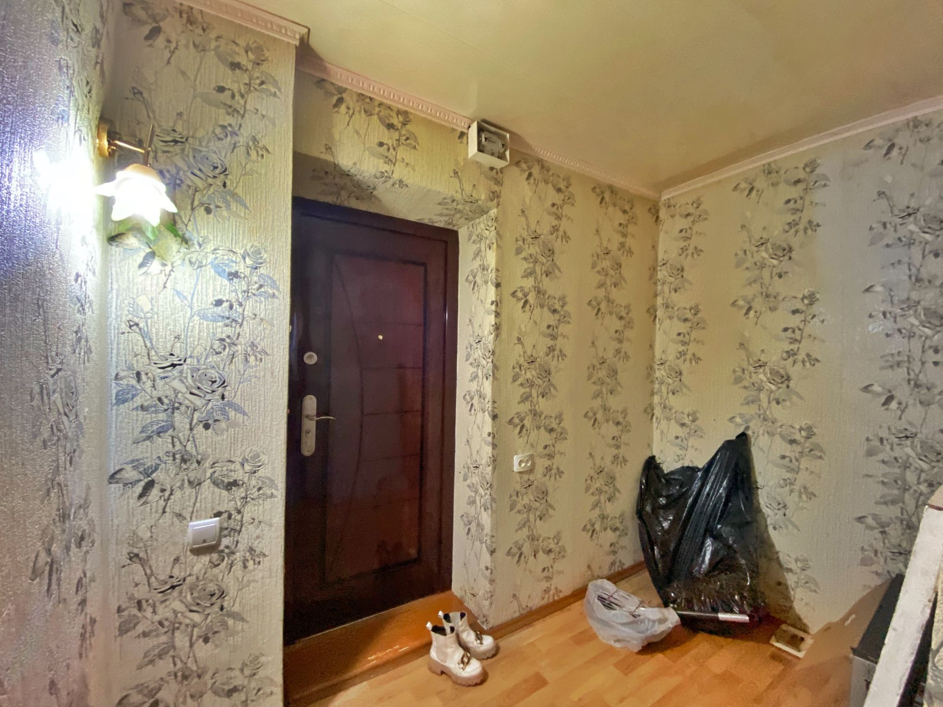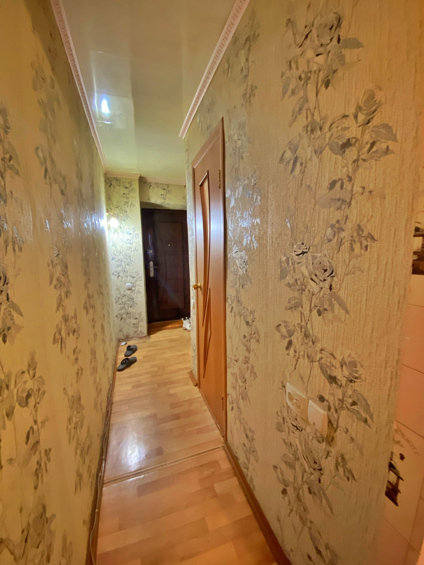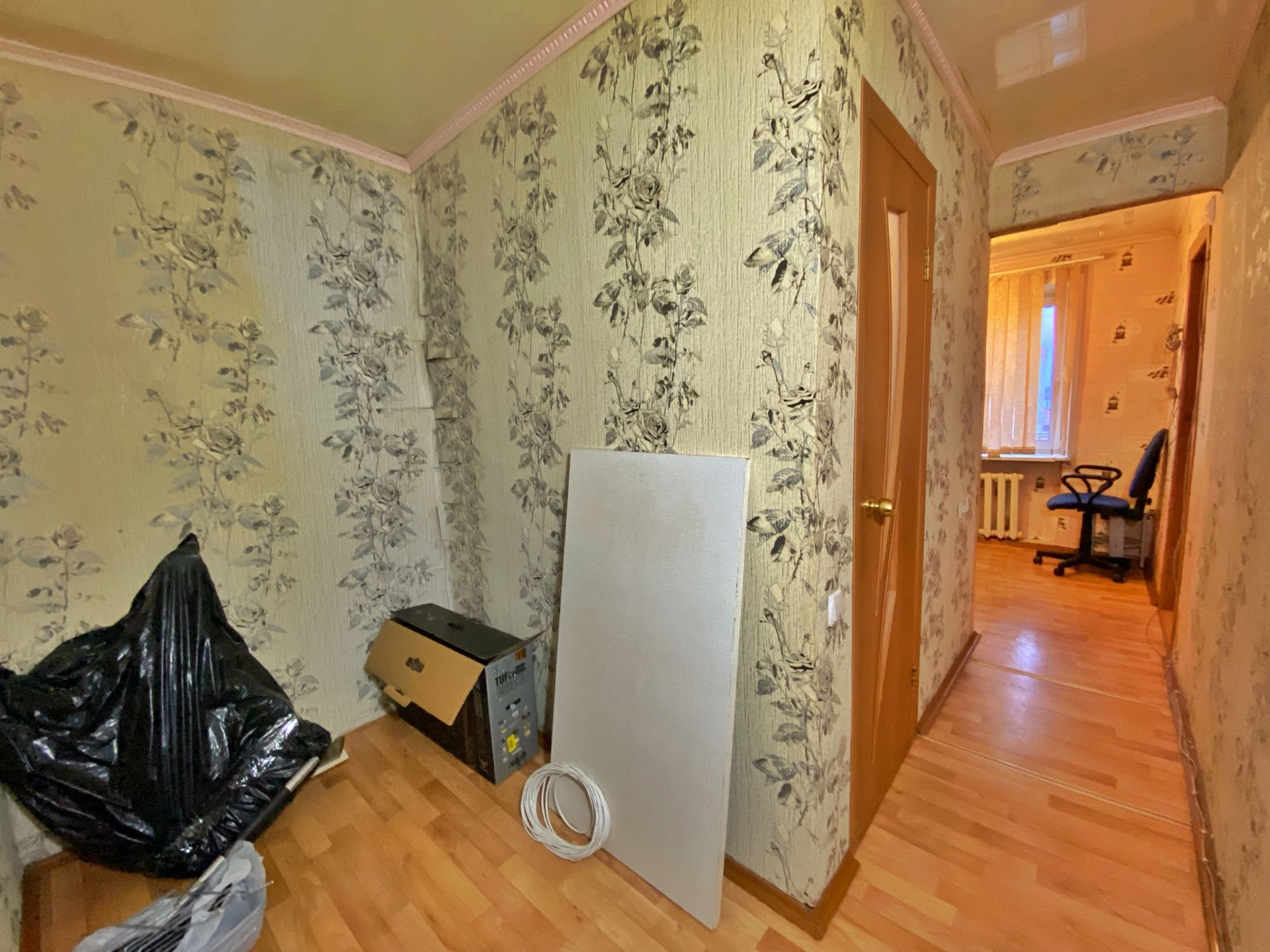 Хорошая планировка: просторная комната и коридор( возможно сделать гардеробную). Санузел совмещённый , обложен кафелем.