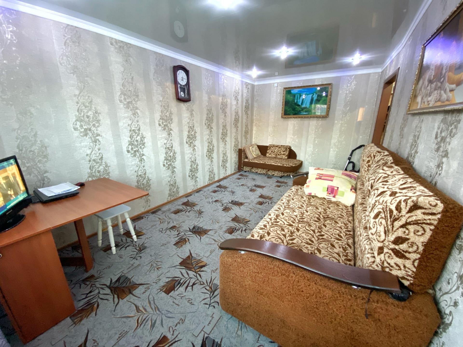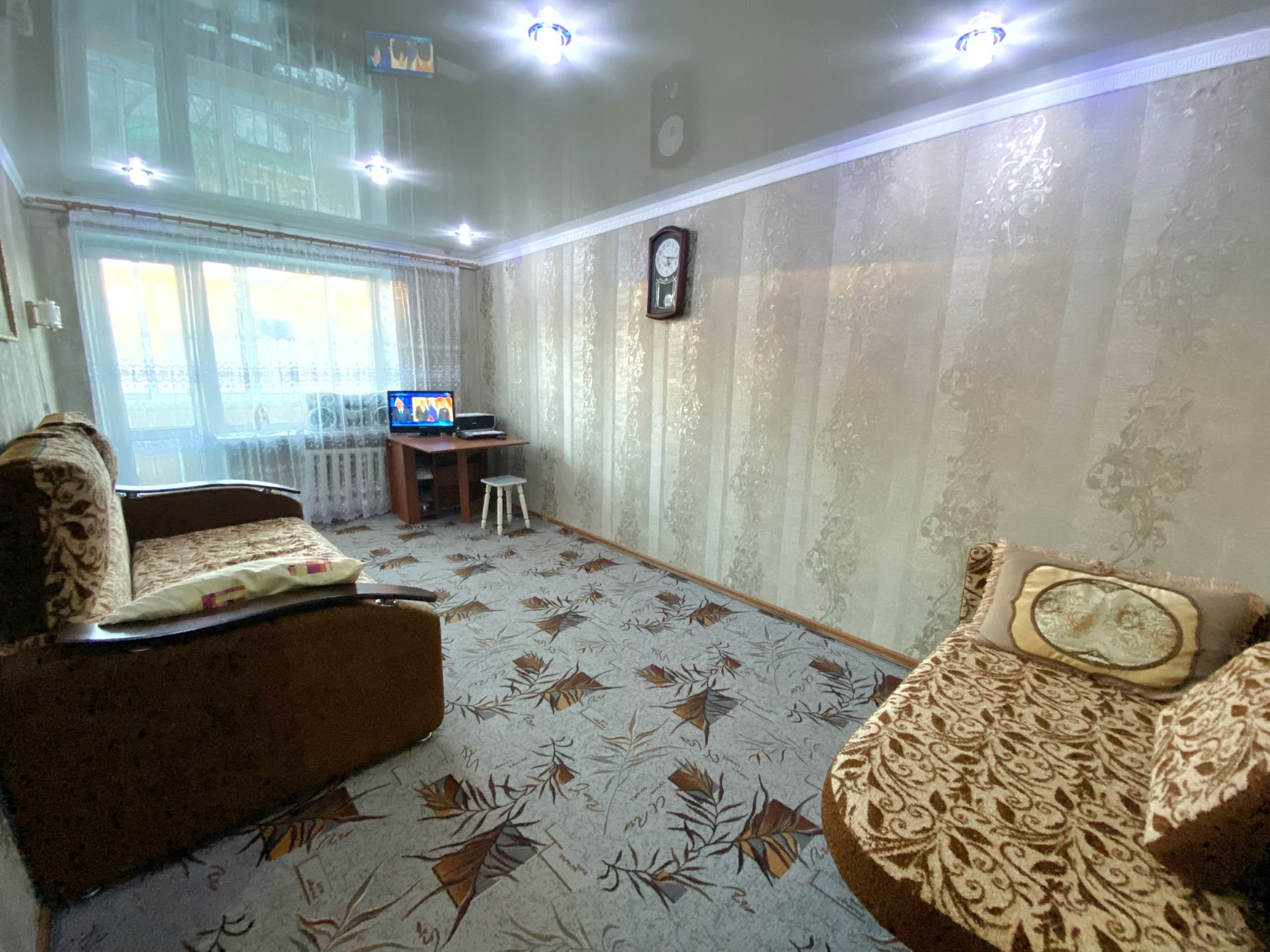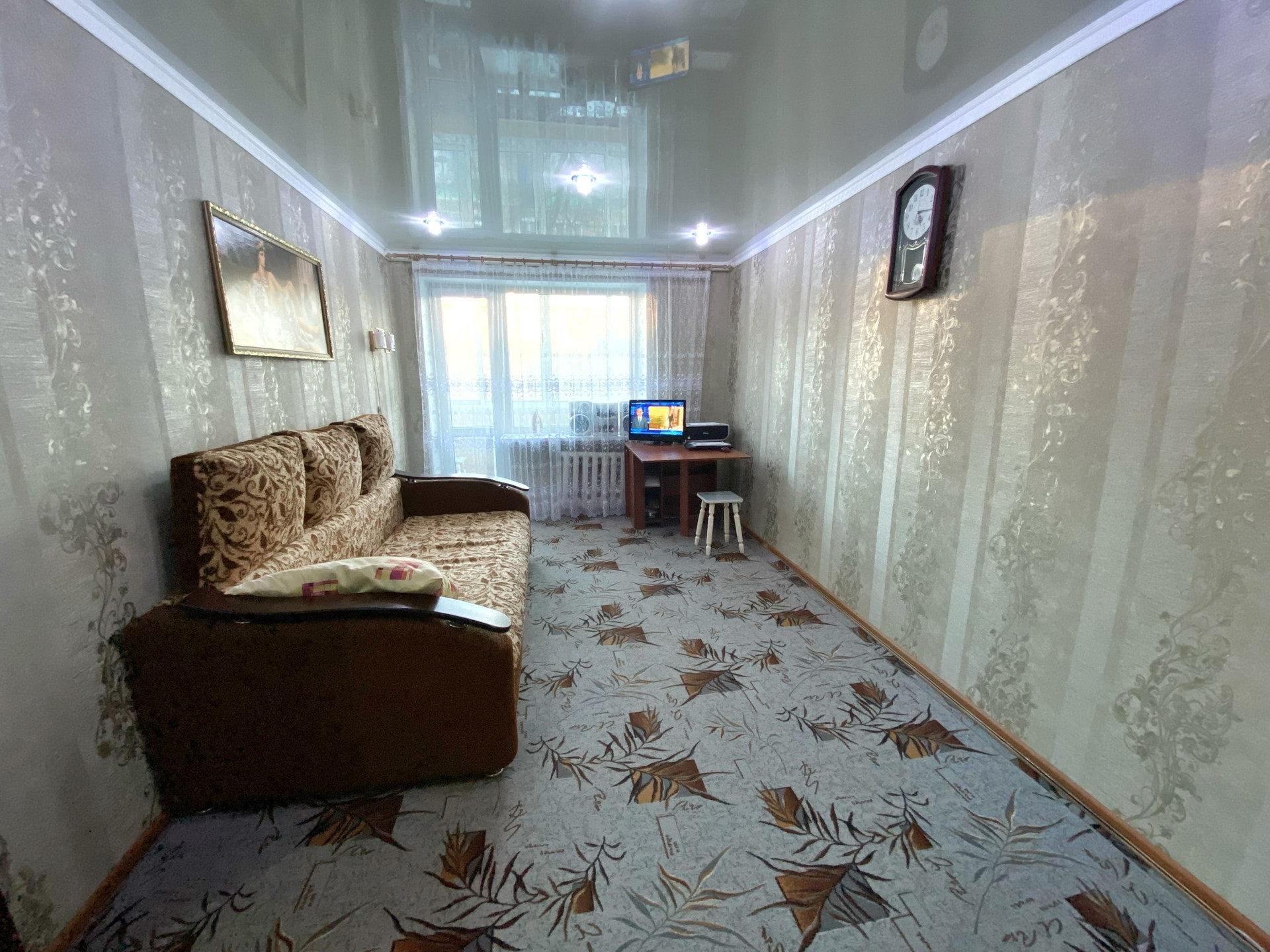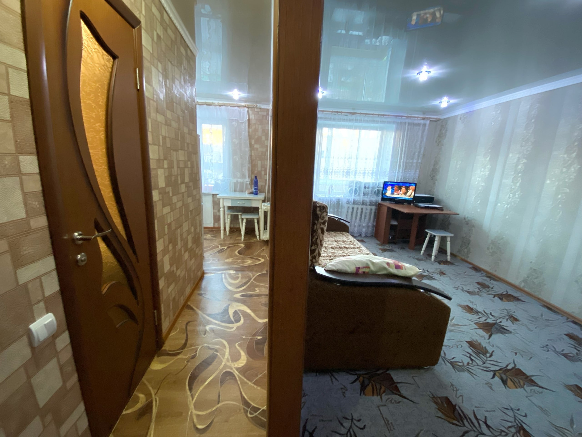 Сделан хороший косметический ремонт. Окна ПВХ, натяжные потолки, хорошие обои, напольное покрытие линолеум в комнате ковролин, санузел обложен плиткой, заменена вся сантехника, новые трубы и полотенцесушитель. Имеется балкон с внутренней и внешней отделкой.