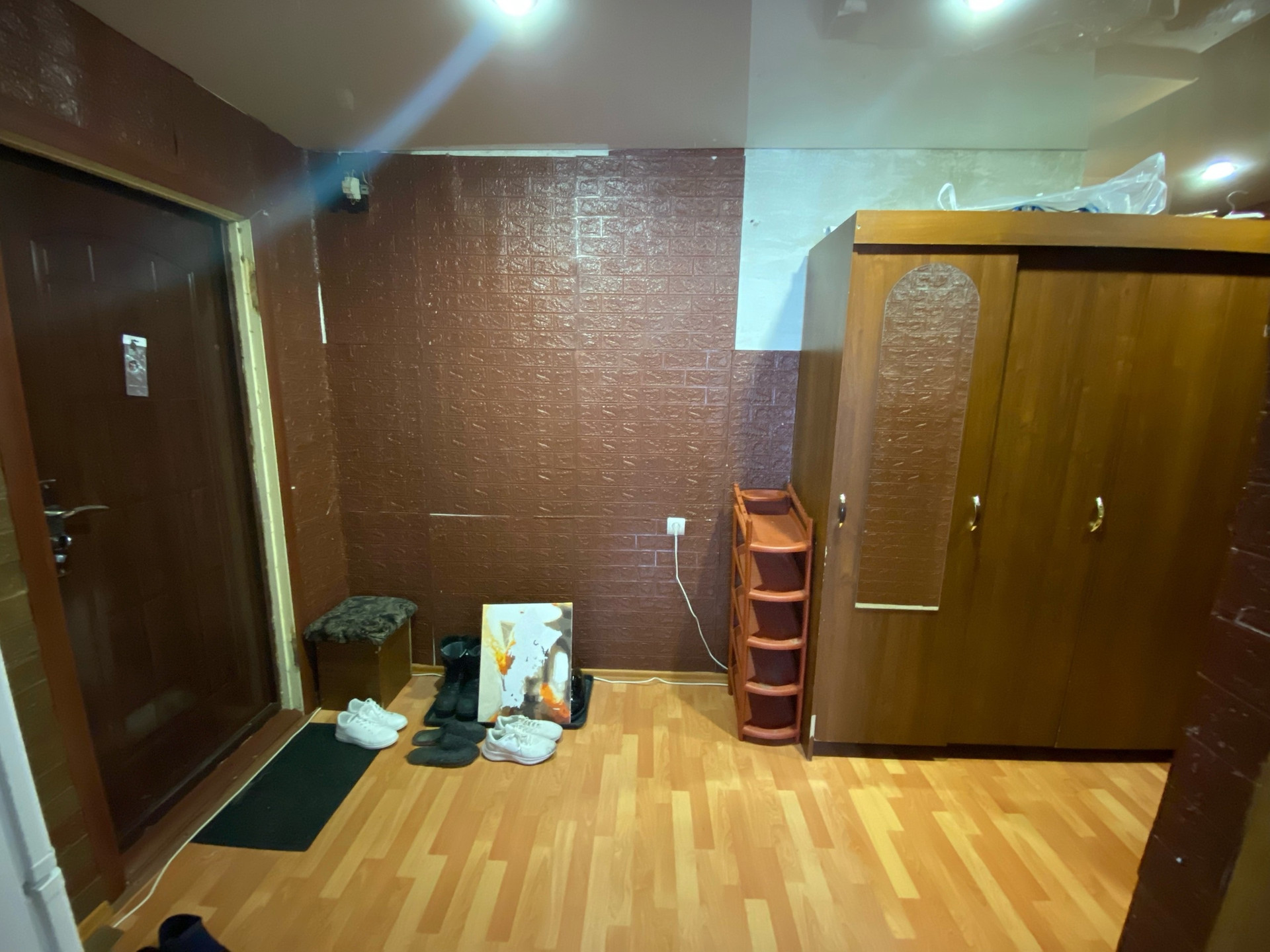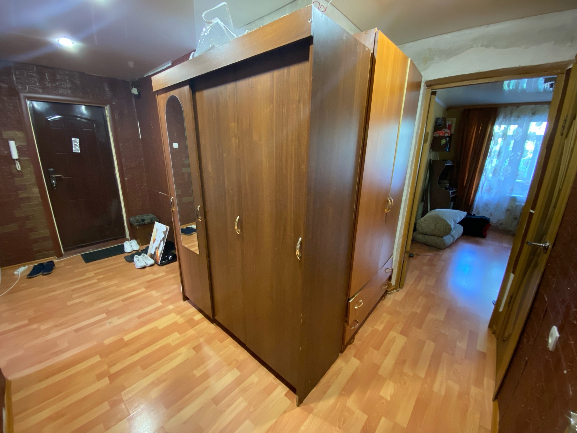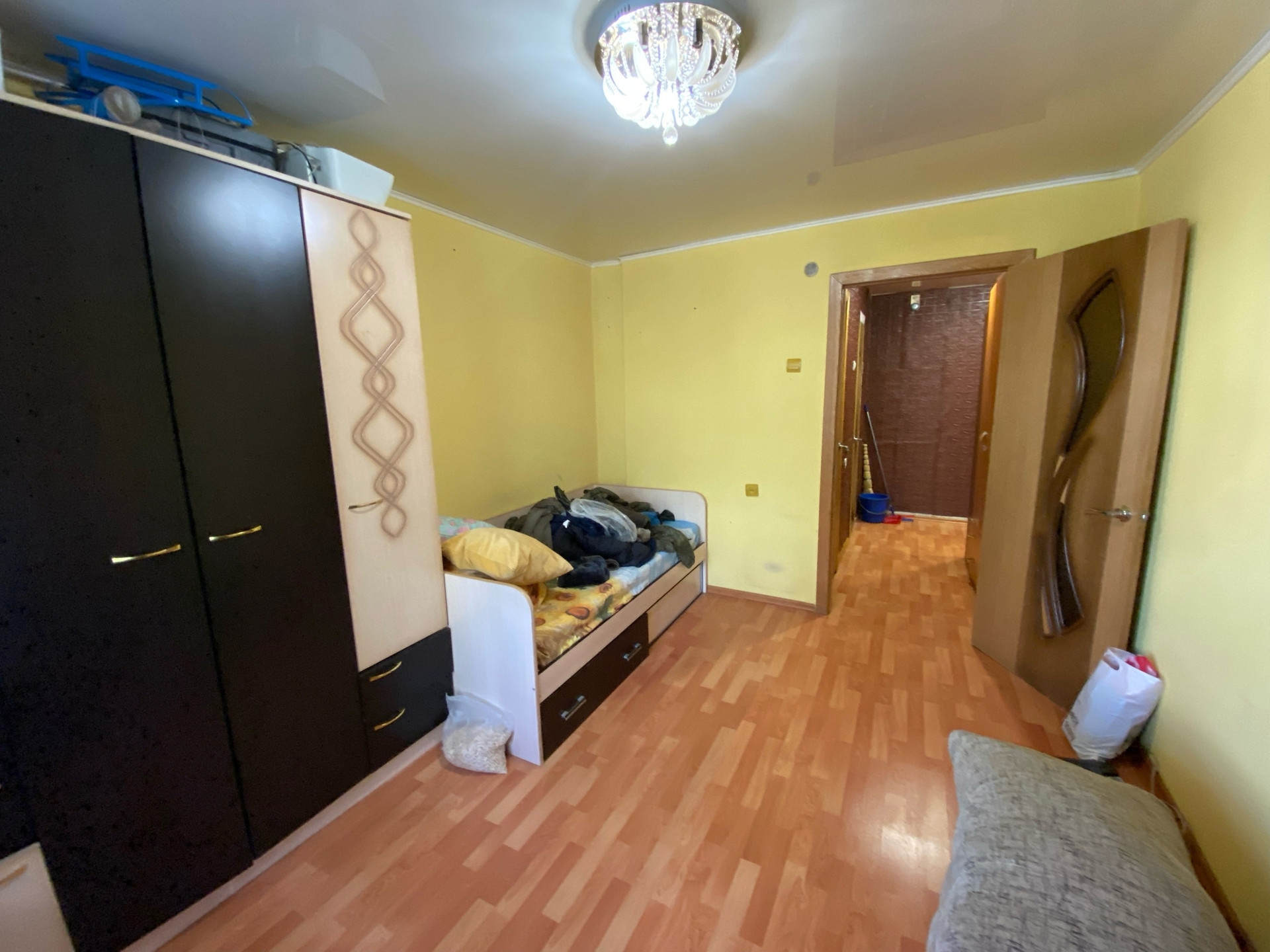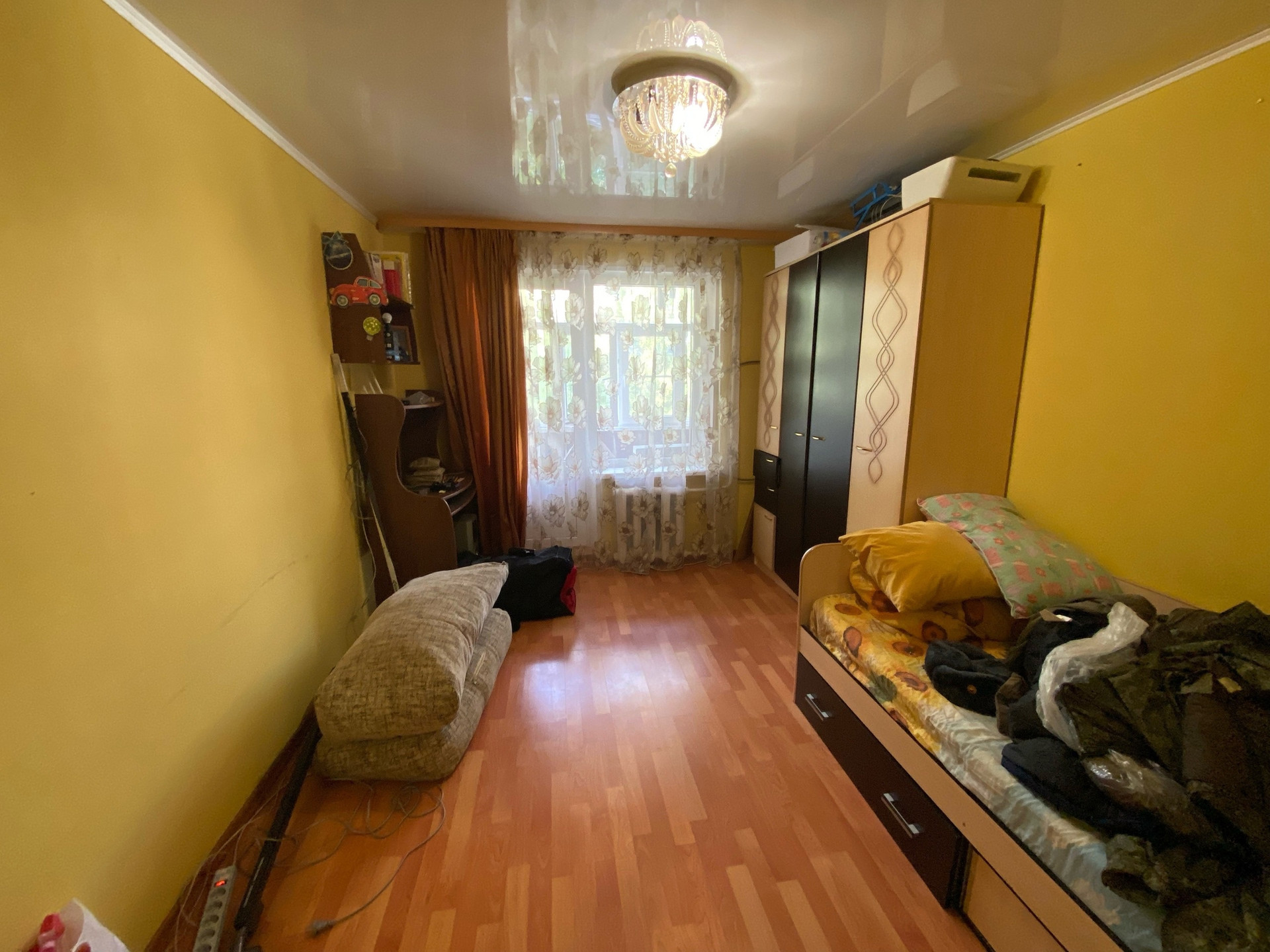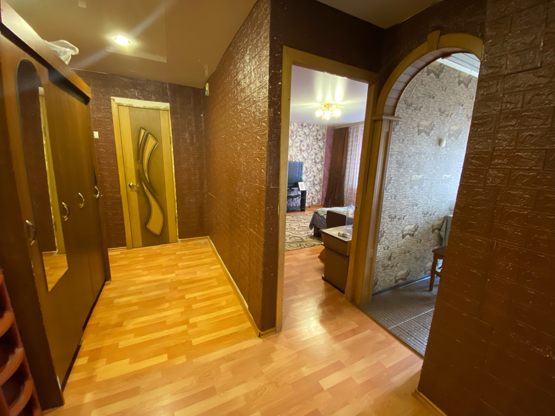 Ремонт косметический, все окна ПВХ, напольное покрытие ламинат и напольная плитка, в комнатах и коридоре натяжной потолок на кухне навесной, балкон застеклен пластиком.
