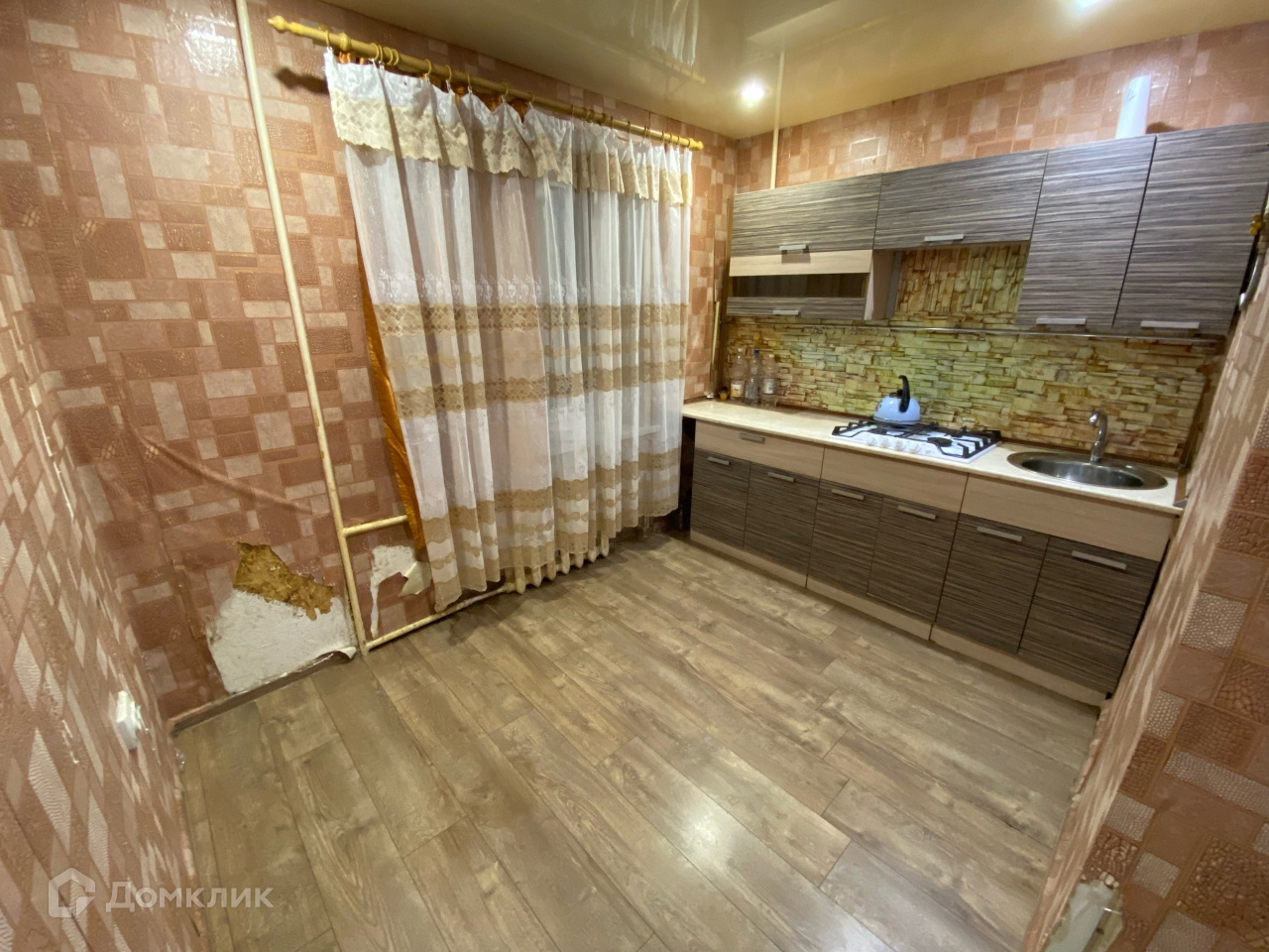 Ремонт косметический, потолок натяжной, везде постелен линолеум, окна ПВХ установлены решетки.