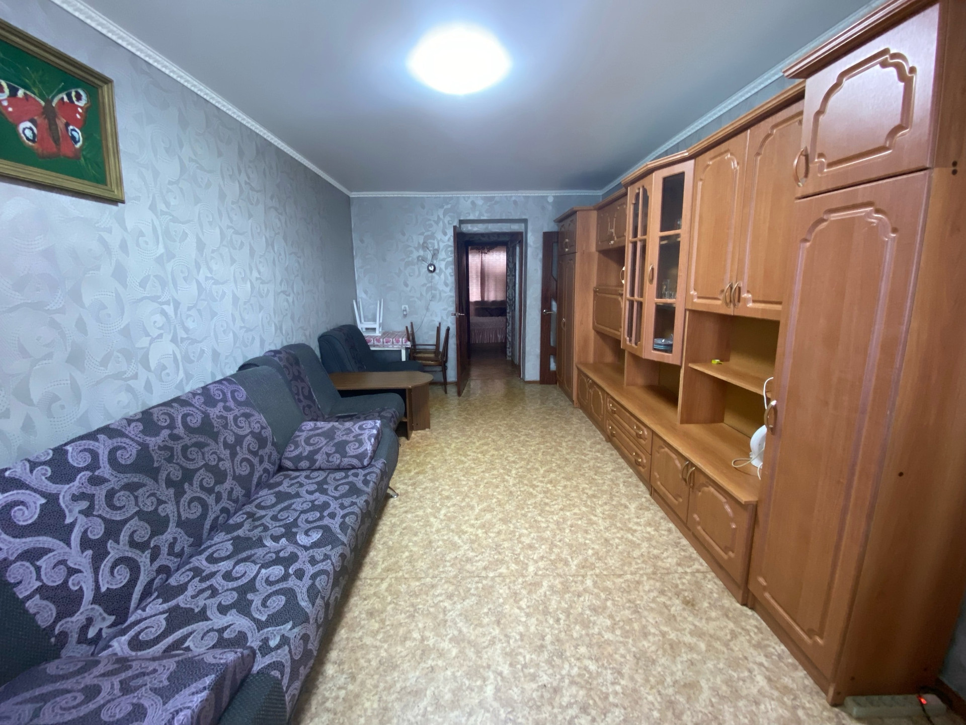 Ремонт косметический, окна ПВХ, частично натяжные потолки, качественные межкомнатные двери одного типа, поклеены хорошие обои, напольное покрытие линолеум.