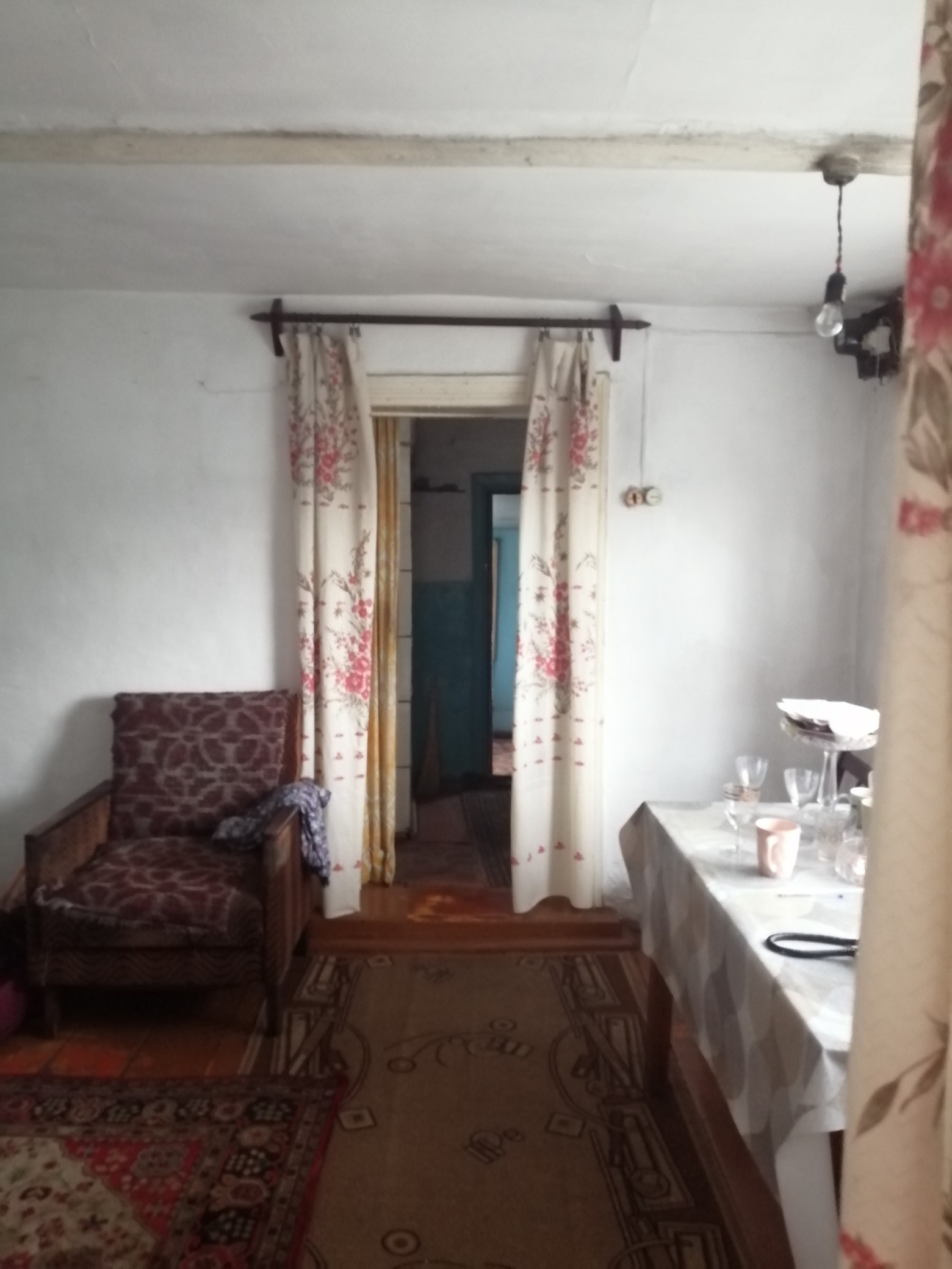 Дом деревянный, 2комнаты +кухня, веранда, есть гараж кирпичный. В доме вода, слив, окна пластиковые, отопление печное на водном контуре. Документы в порядке.