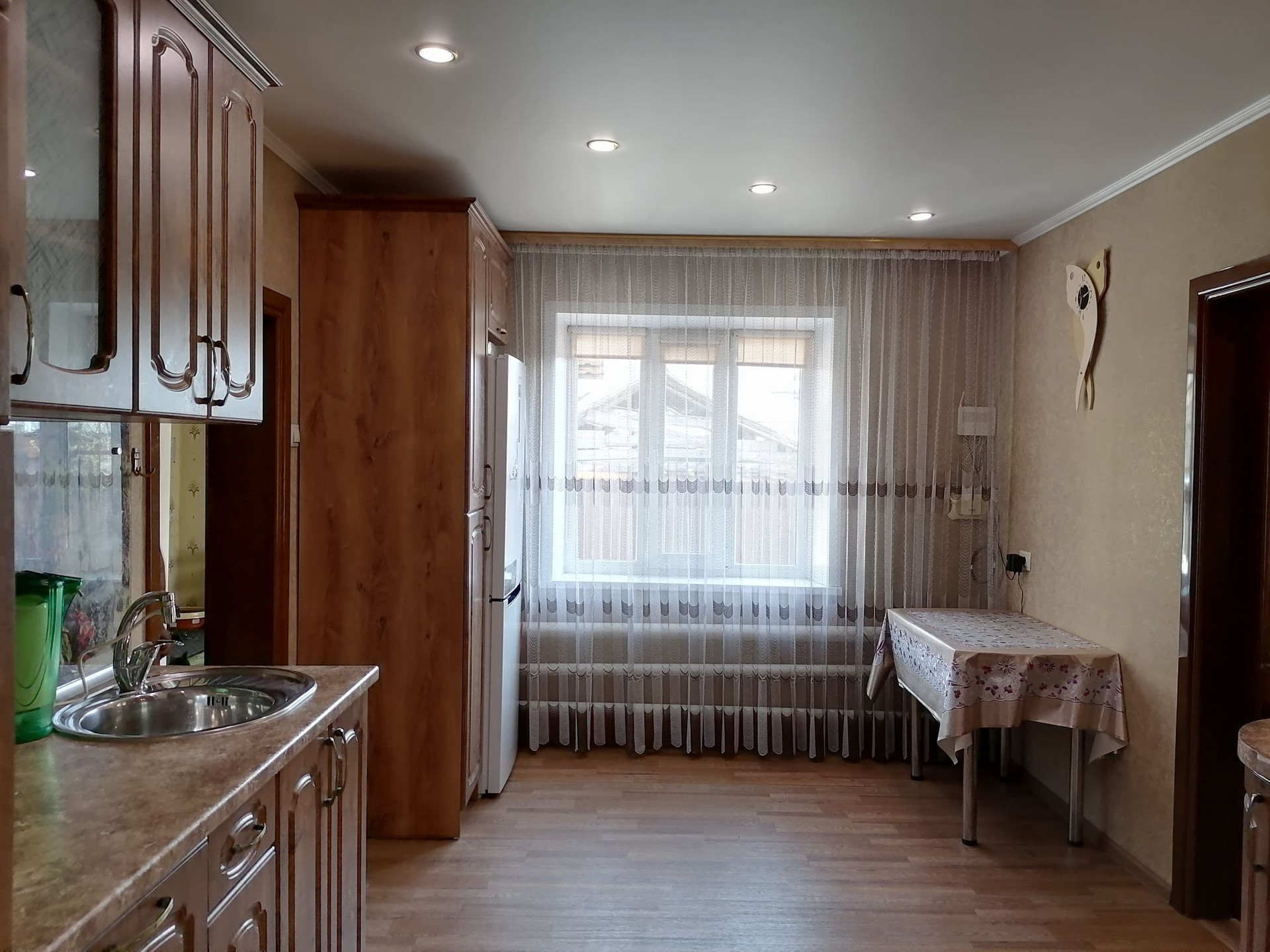 Внутри дома вас ожидает красивый уютный ремонт, выполненный из качественных материалов. Потолки натяжные с современным светодиодным освещением. Полы застелены линолеумом увеличенной толщины. На стенах качественные обои спокойных тонов. Окна пластиковые. Входная дверь «евро», межкомнатные из массива дерева. В подарок новым хозяевам остается дорогой кухонный, гарнитур на котором будет приятно готовить любимую еду для семьи.Сан. узел совмещен, в нем установлена душевая кабина и бойлер, который обеспечит горячей водой, водоснабжение централизованное.