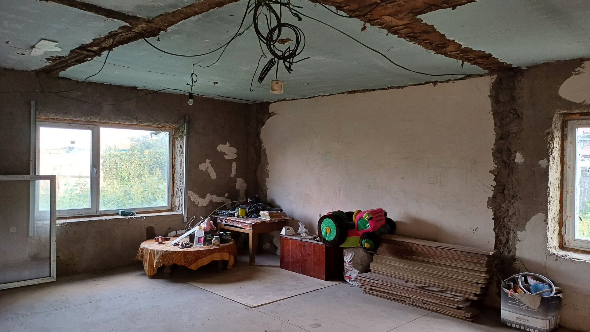На участке имеется добротный недострой из бруса.