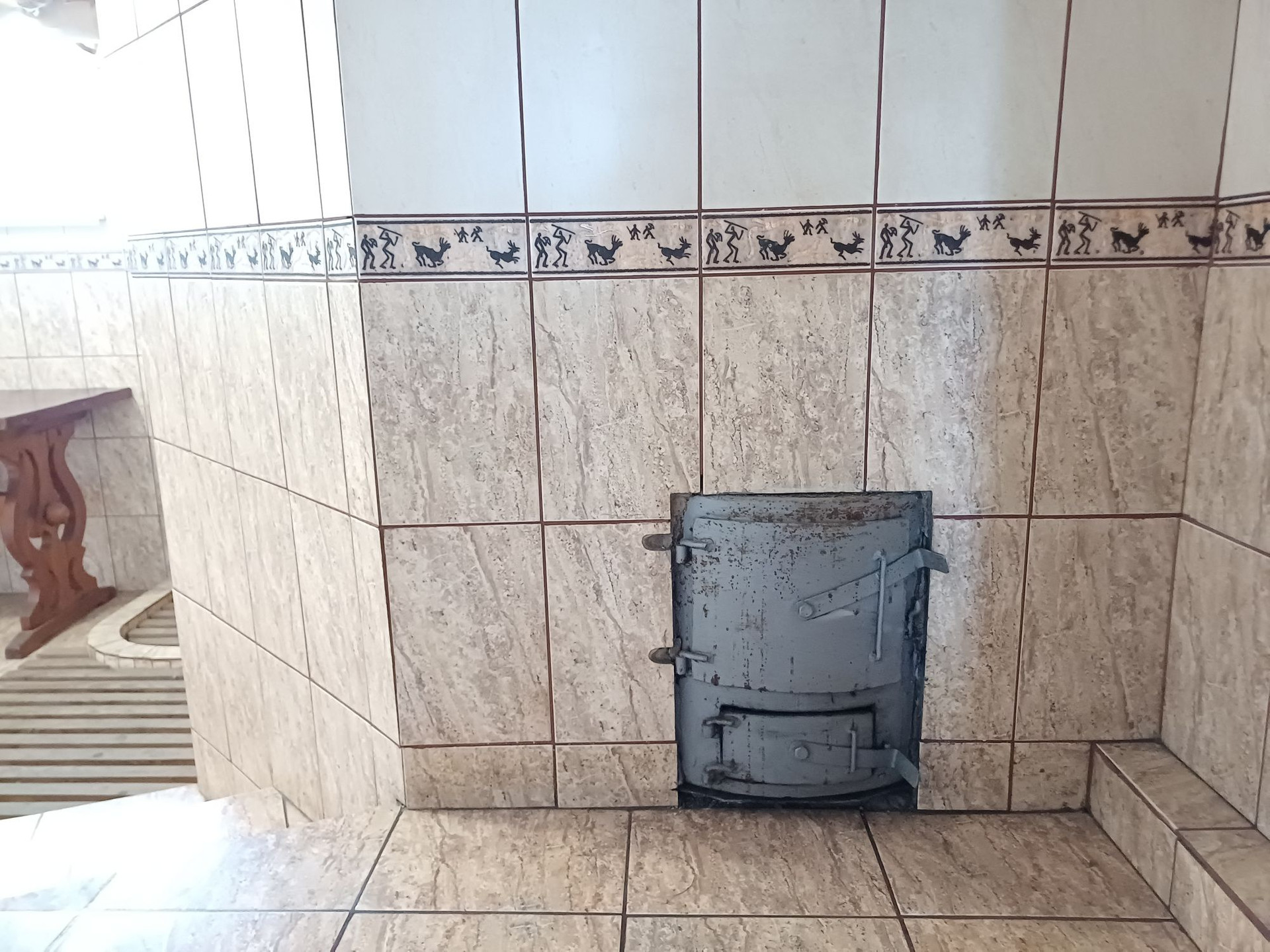 Разделён на зоны: в одной печь, уголь, дрова для баньки, в другой  место для хранения хозяйственных предметов.