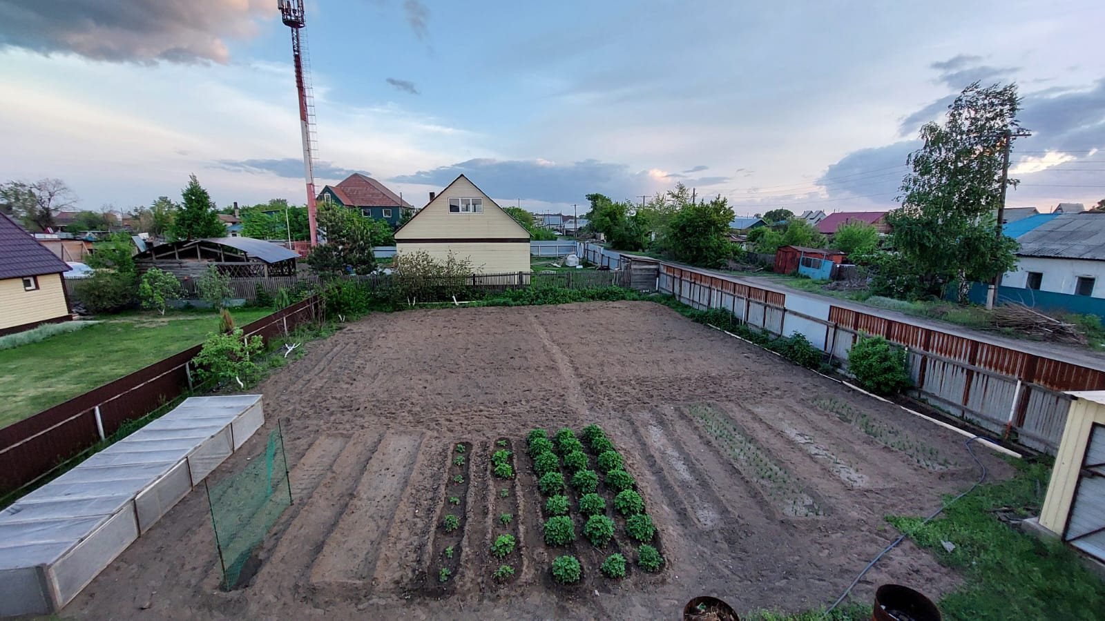 Имеется гараж с секционными воротами. в нем смотровая яма, и подвал ,для хранения заготовок.