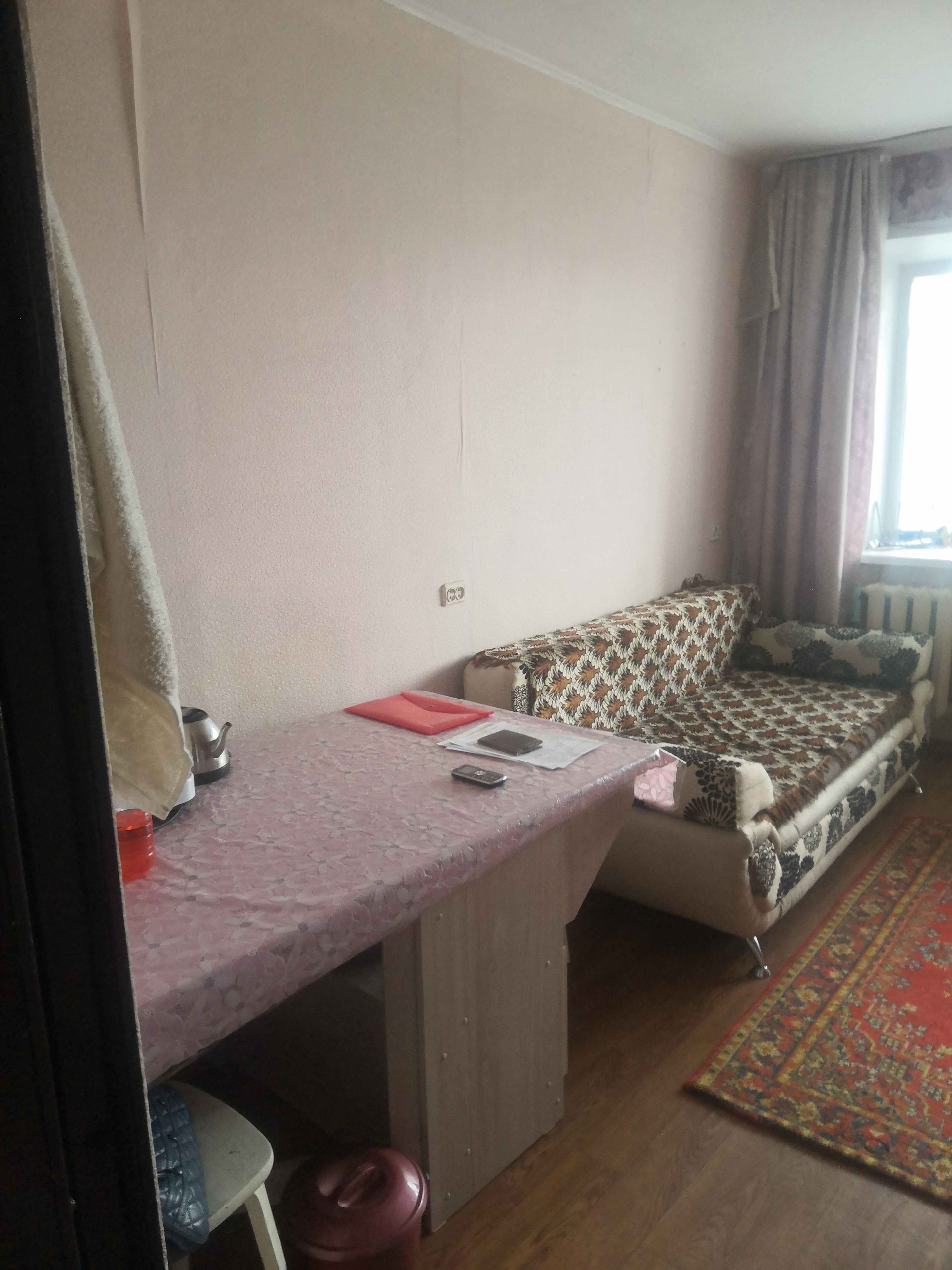 Продаю комнату в центре города. В комнате сделан ремонт: поклеены обои, постелен линолеум. Новое пластиковое окно, новый пластиковый балкон, новая входная  евро-дверь.Продажа без мебели. В секции 5 комнат. Очень хорошие соседи. Душа нет, но его можно сделать. На кухне холодная и горячая вода.