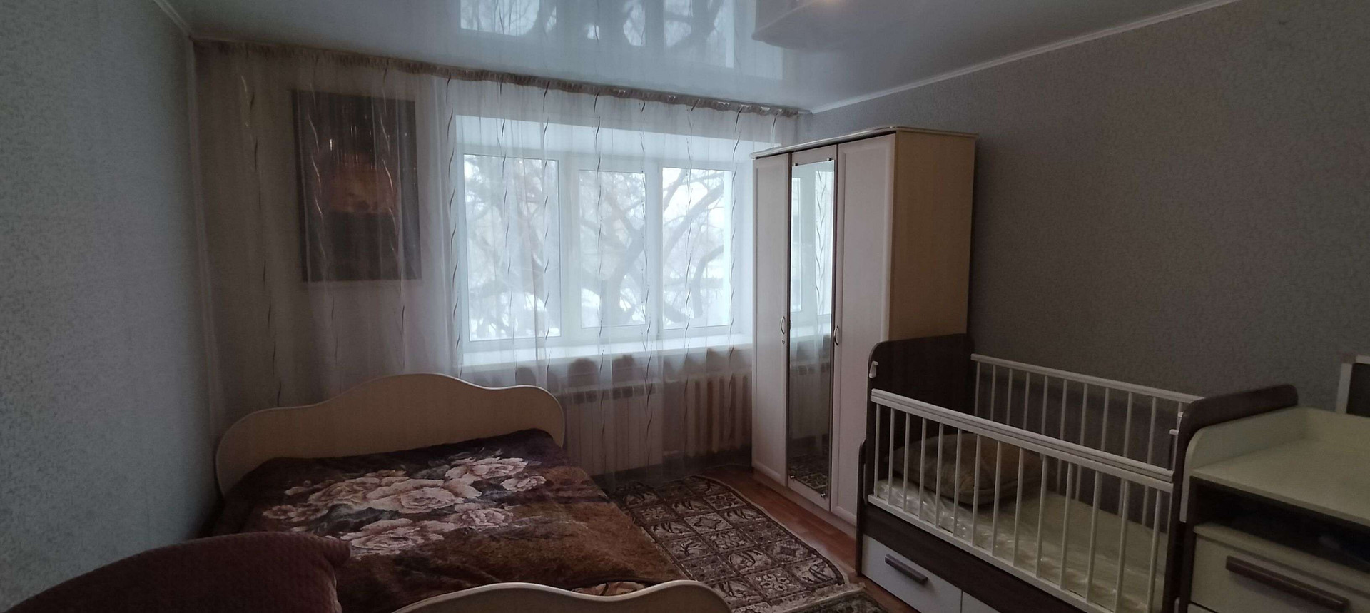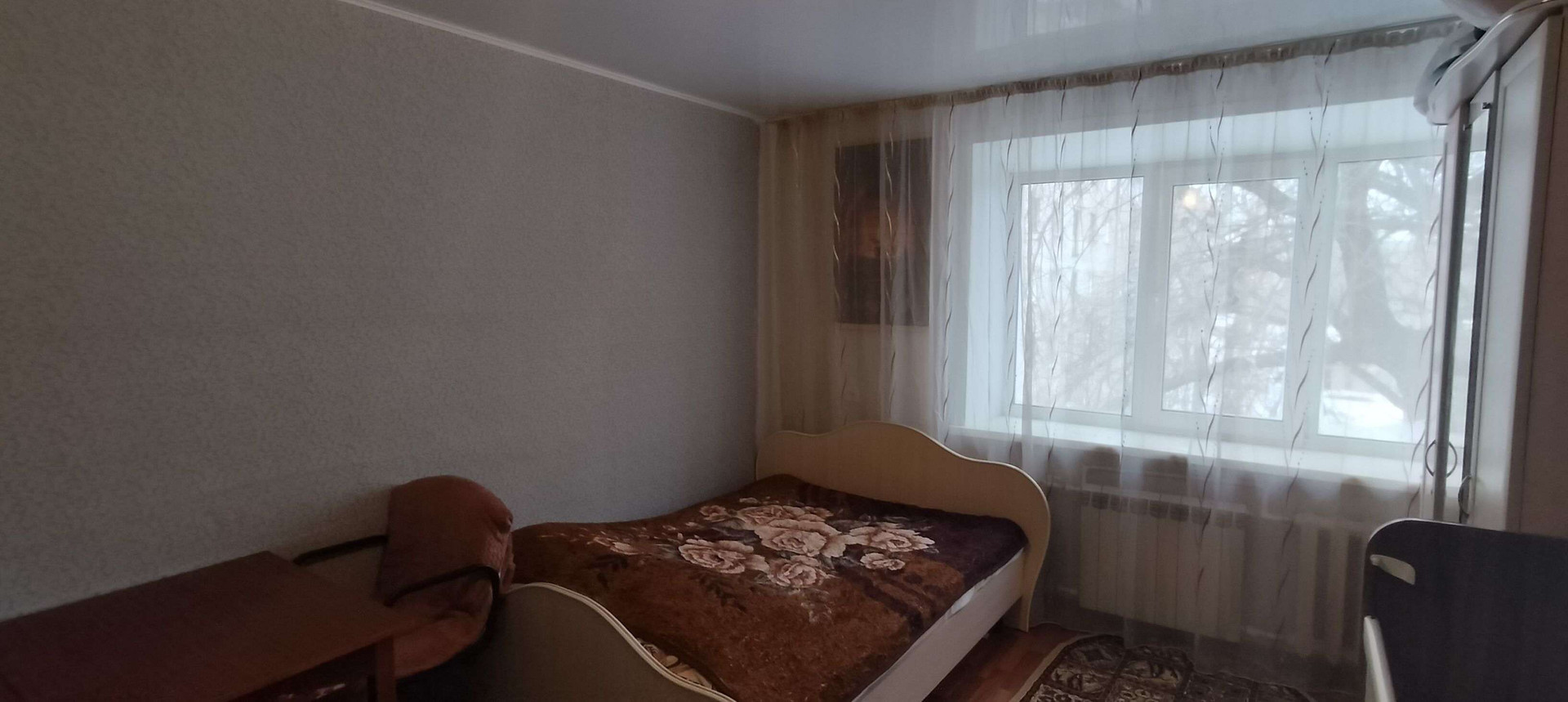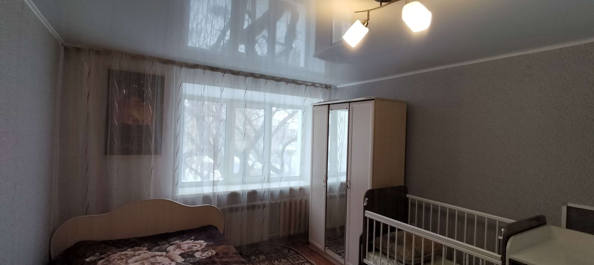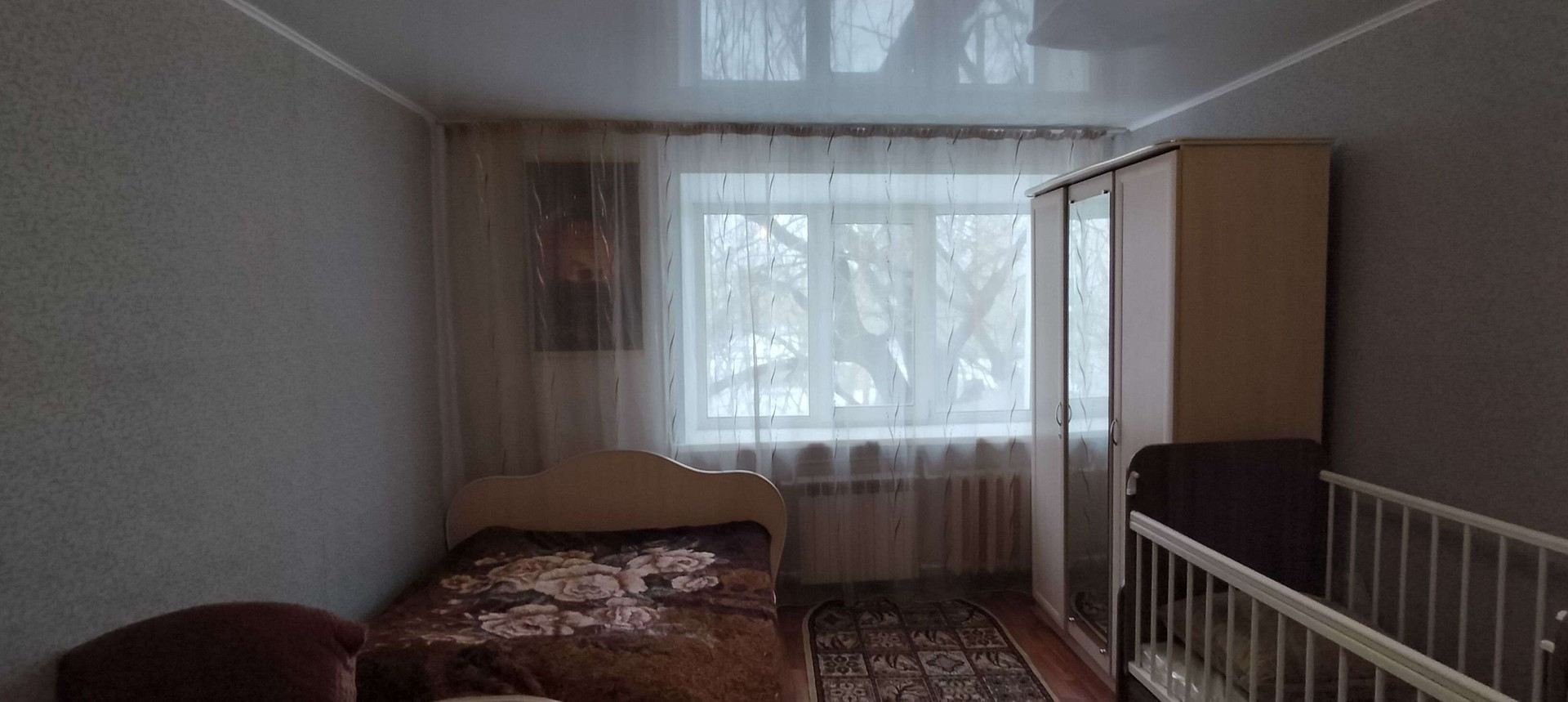 Комната просторная, светлая и теплая,ремонт косметический.Не угловая!Новый натяжной потолок.Окно большое пластиковое.