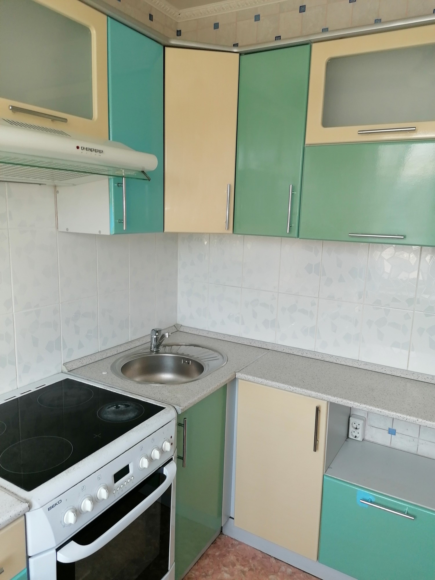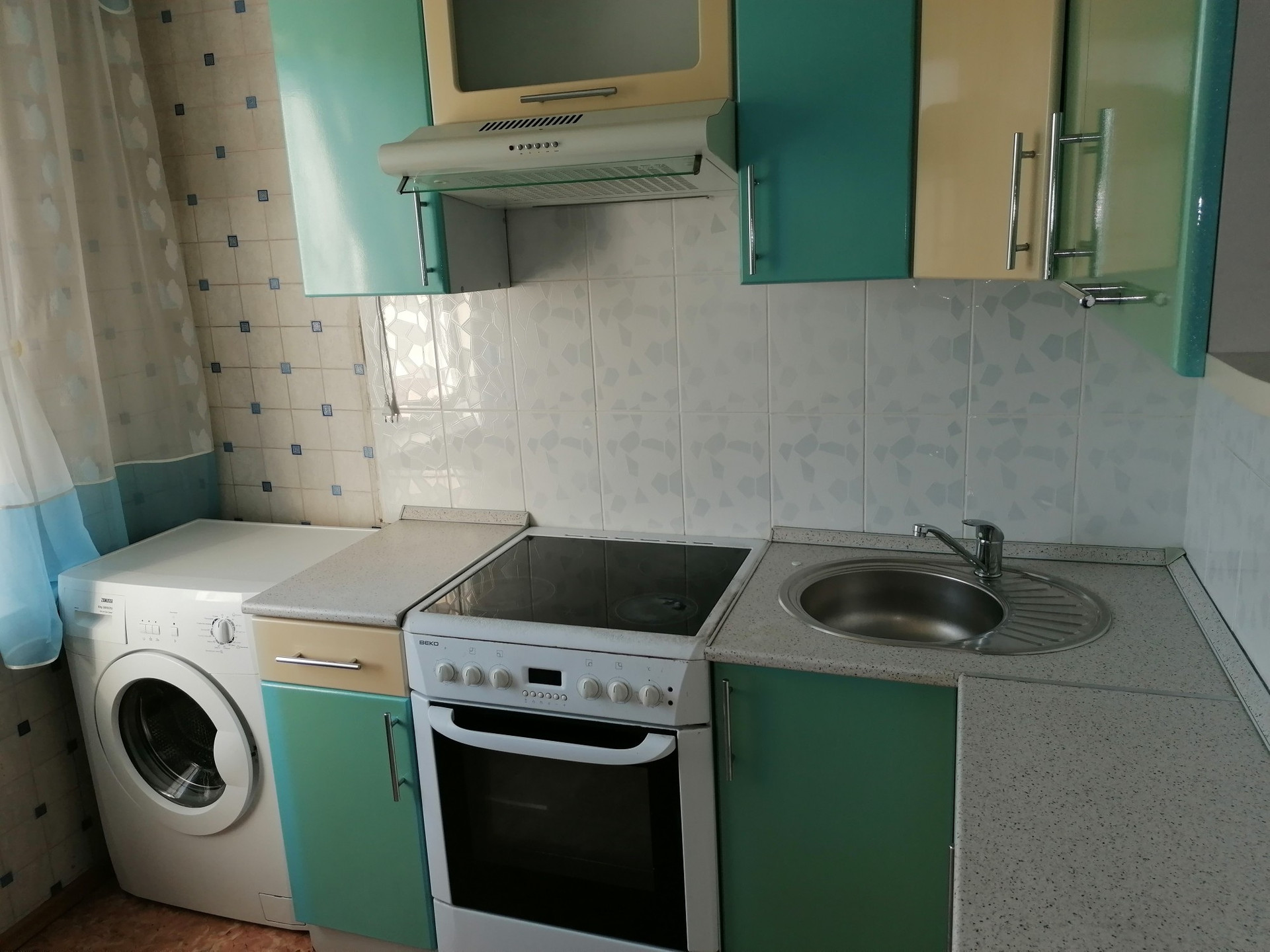 Остаётся кухня. Плита, стиральная машинка и угловой шкаф (разобраный)