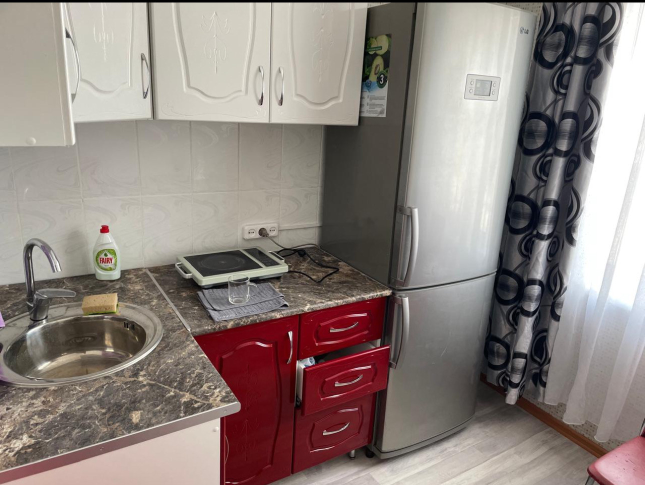 Квартира в хорошем состоянии, продажа вместе с мебелью (кухня новая, стол, стулья, диван, стиральная машинка, стенка, телевизор, холодильник).
