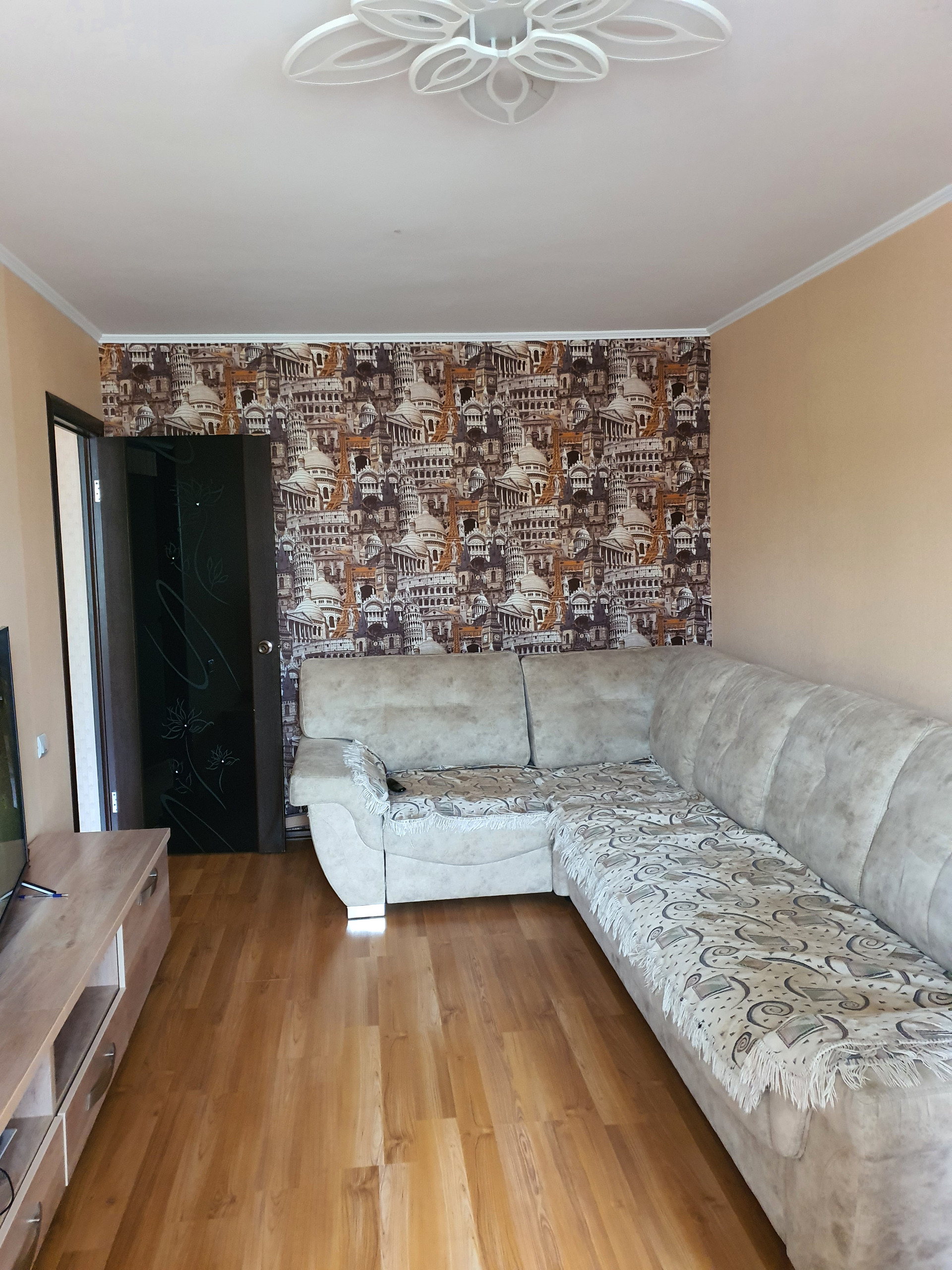 Квартира в отличном районе, рядом все магазины,аптека,школа, 2 д.сада, остановка общественного транспорта в любой конец города. Во дворе современная детская площадка, за домом каток(хоккейная коробка).Потолки и стены ровные, на полу ламинат по всей квартире,  в ванной кафель,окна и балкон пластик. В кухне остаётся гарнитур и эл.плита.