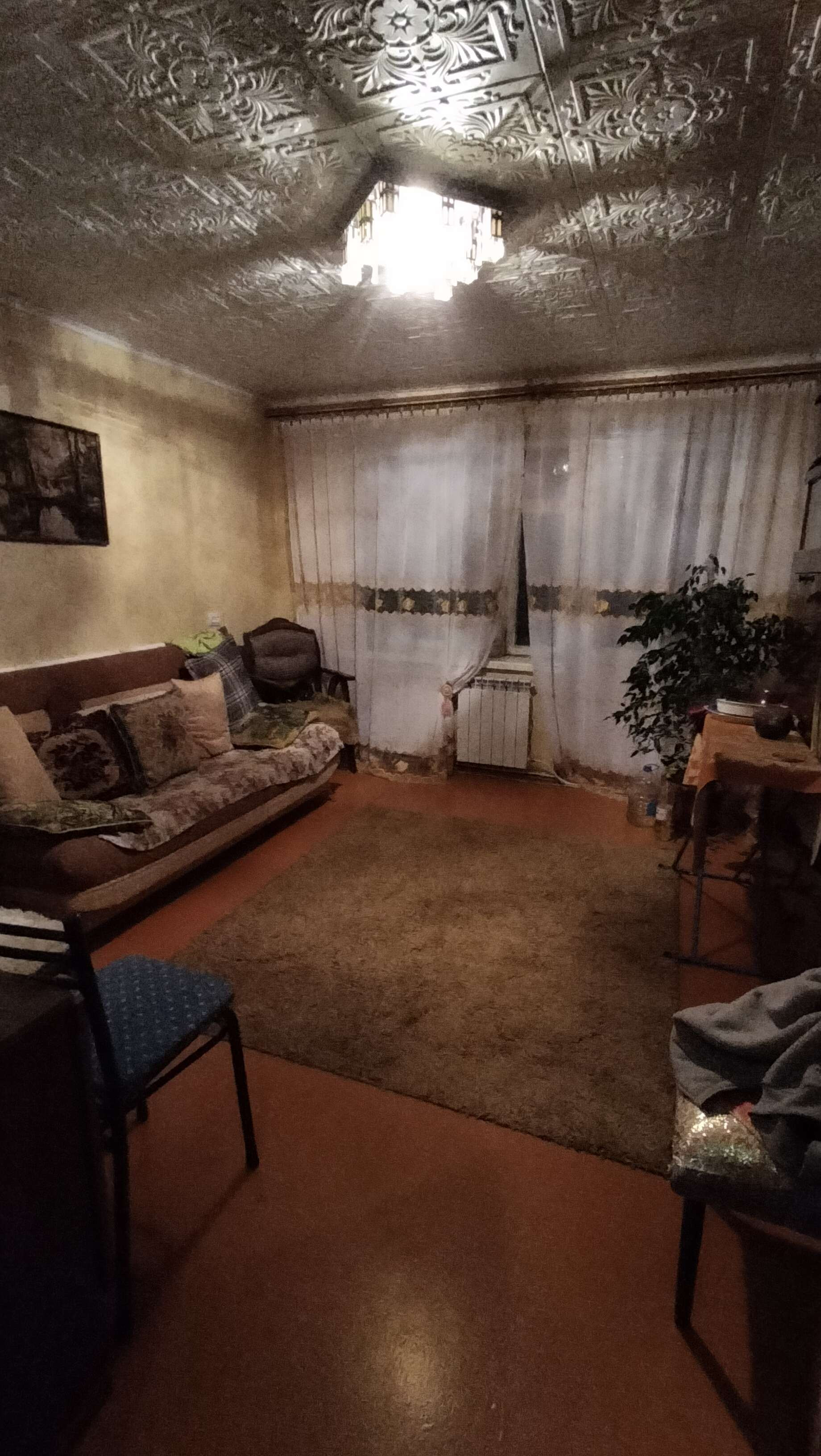 хорошая уютная квартира,в тихом районе города индивидуальное отопление есть огород ,подвальное помещение ,большой балкон 6м,кладовое  посещение в квартире 1*1м
