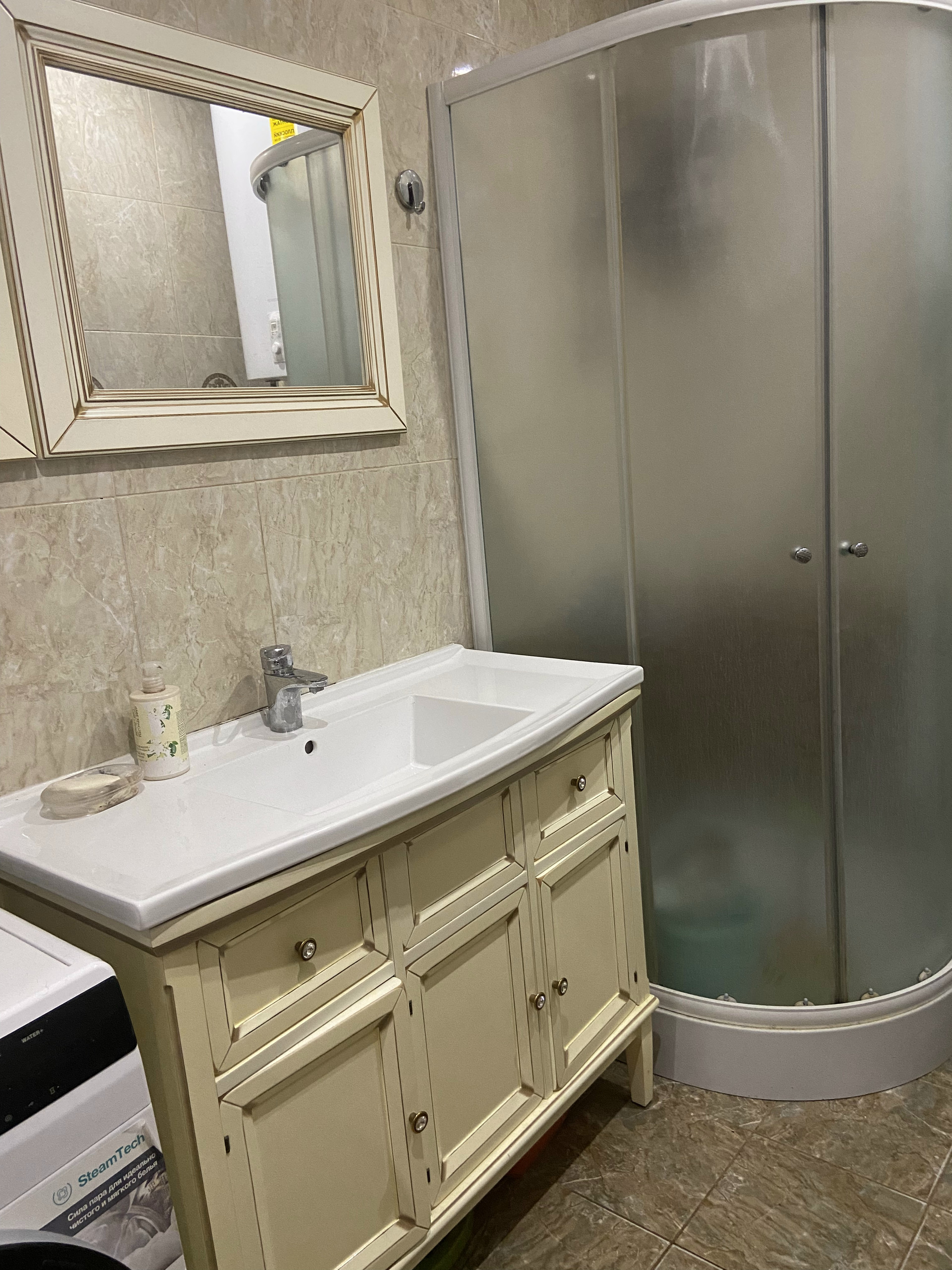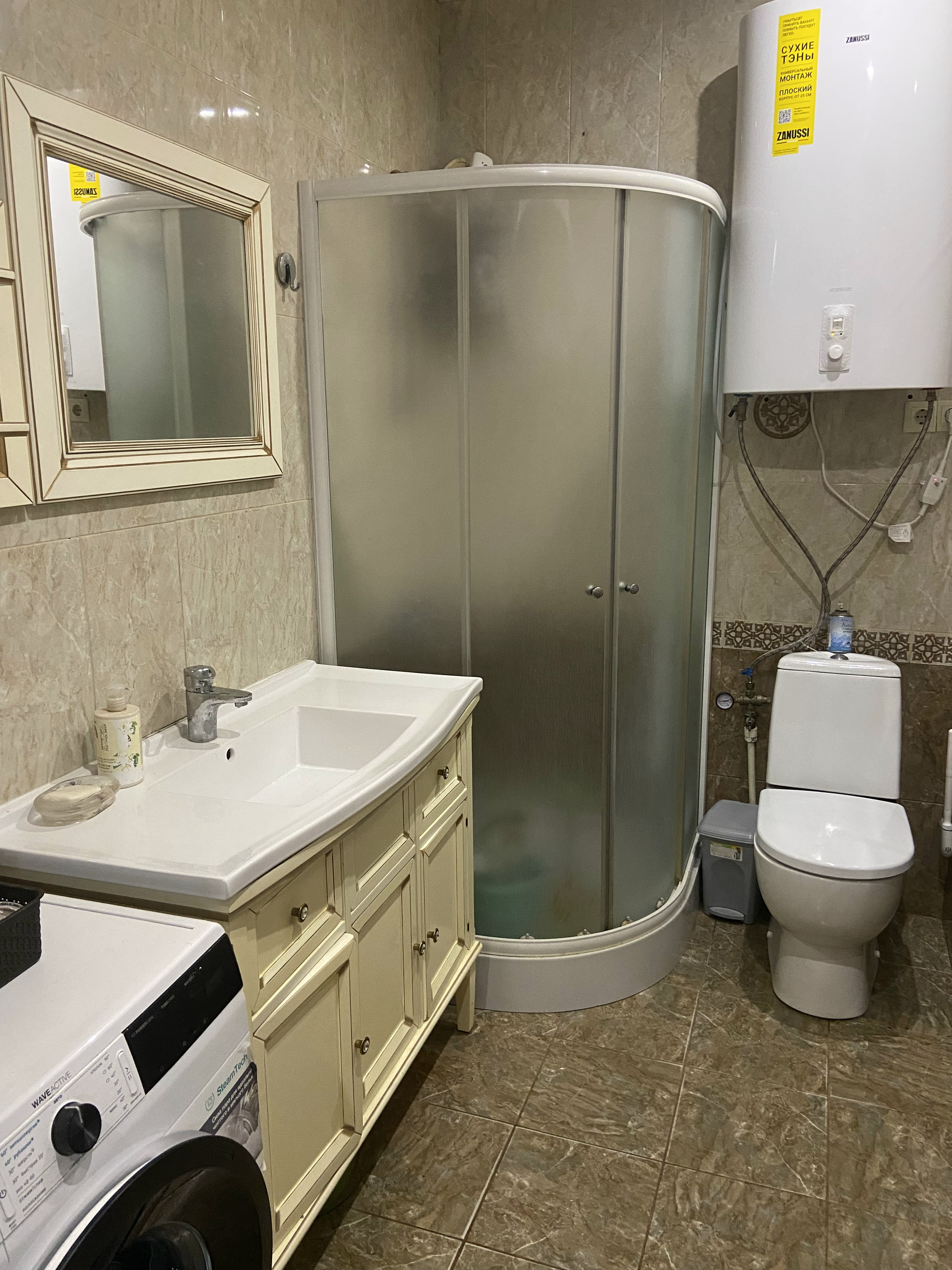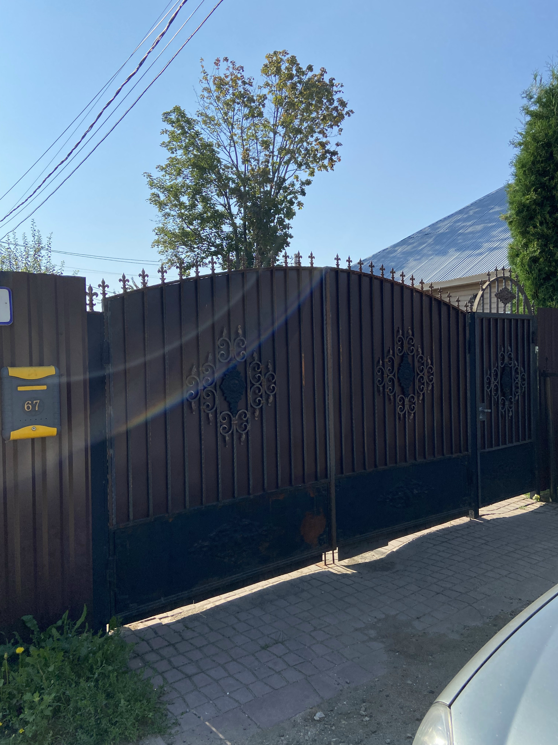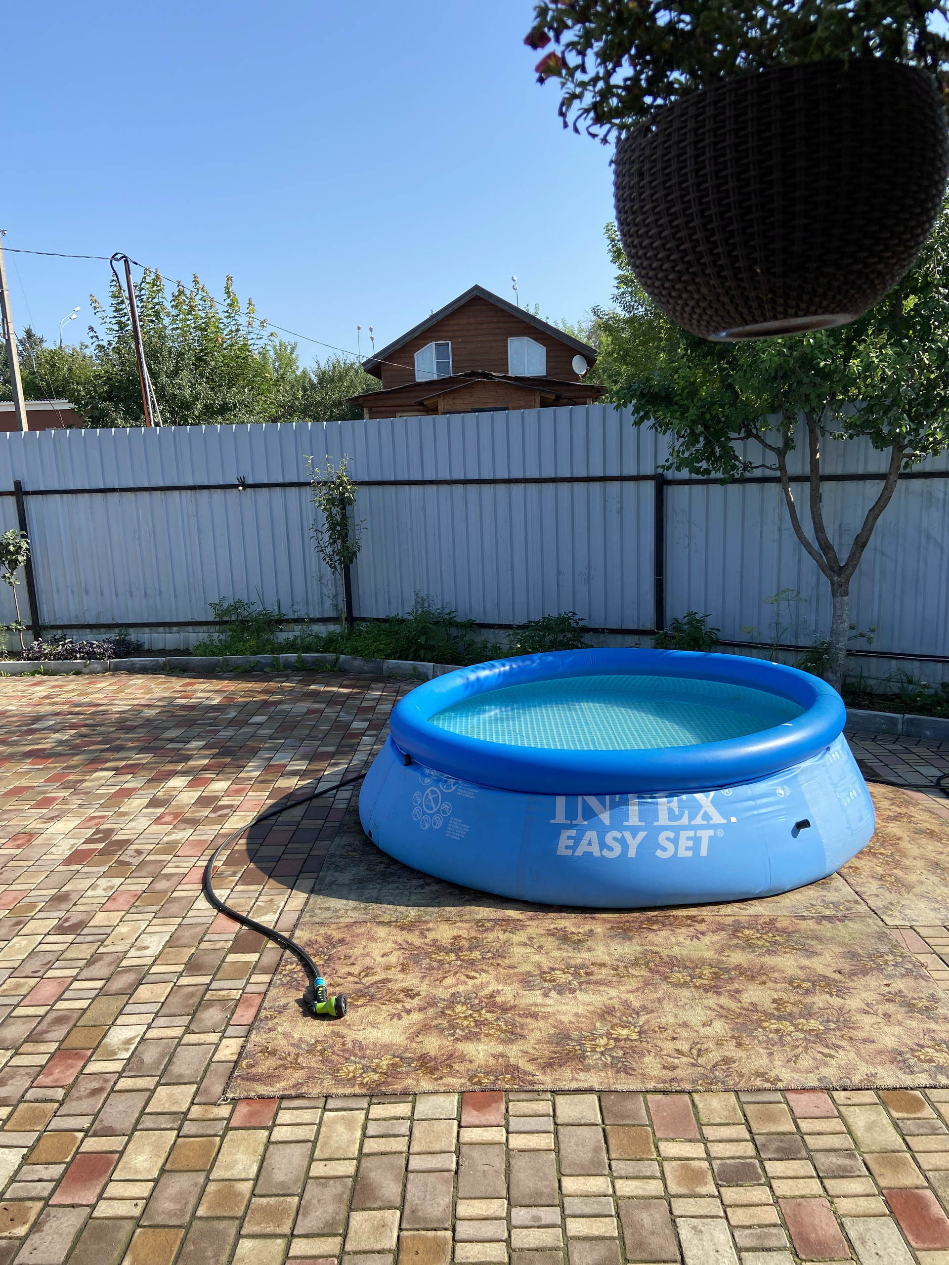 Во дворе уложен очень крепкий и надёжный английский брук с уклоном, чтобы вода стекала за забор. На улице выведен кран с водой, розетка.Сделан свет во дворе, можно включать вечером . Летом стоит бассейн. Есть коптильня, мангал, казан, брусья и турник. За домом стоит дровяник, и большая мастерская.