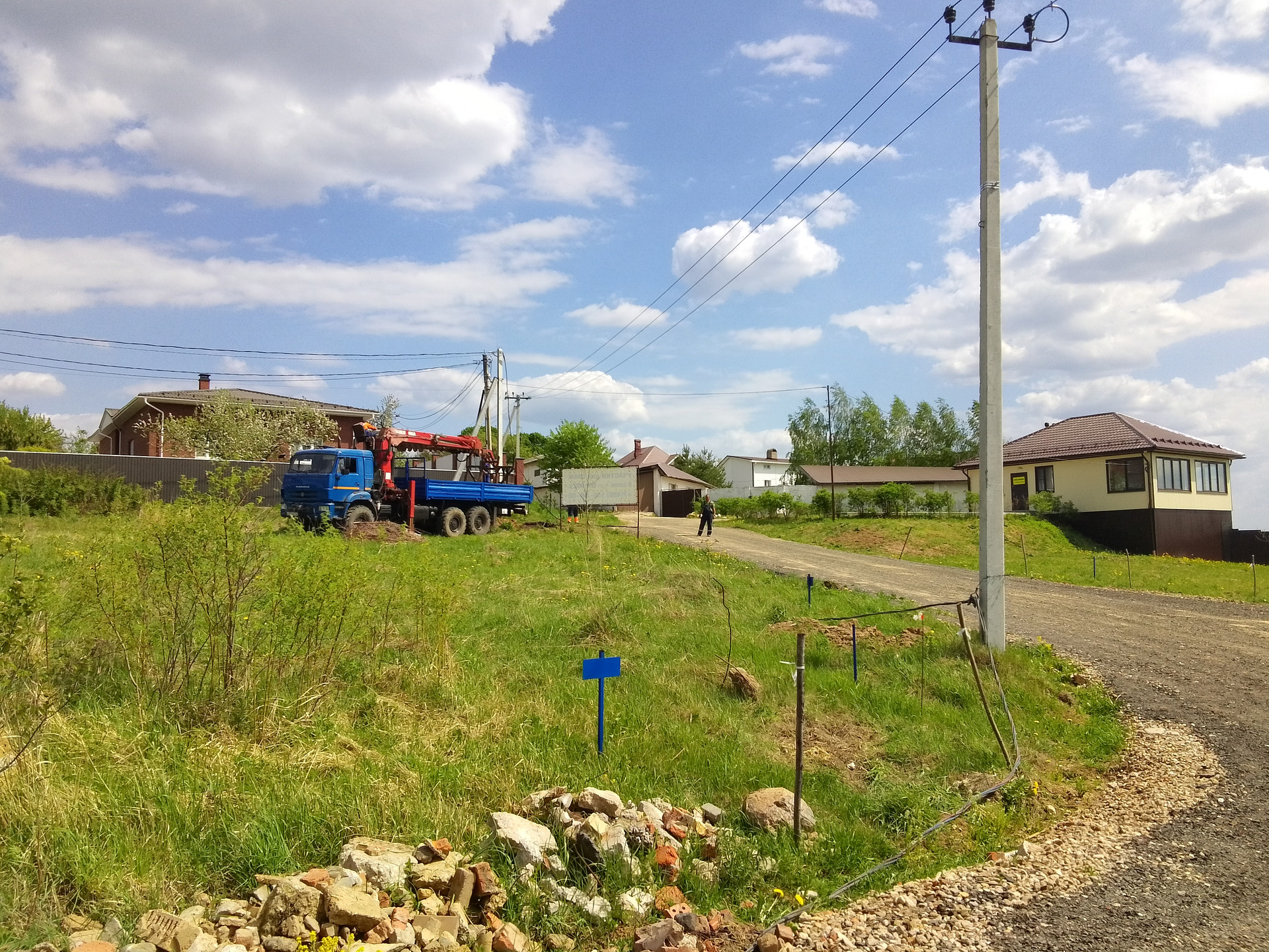 Электричество 15 кВт на участок. Опоры ЛЭП установлены, электричество уже есть.