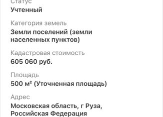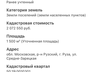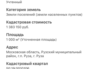 Продаётся земельный участок в г. Руза под ИЖС . Площадь участка 9 соток . Электричество и газ по границе . Кад. номер 50:19:0050501:1493 |