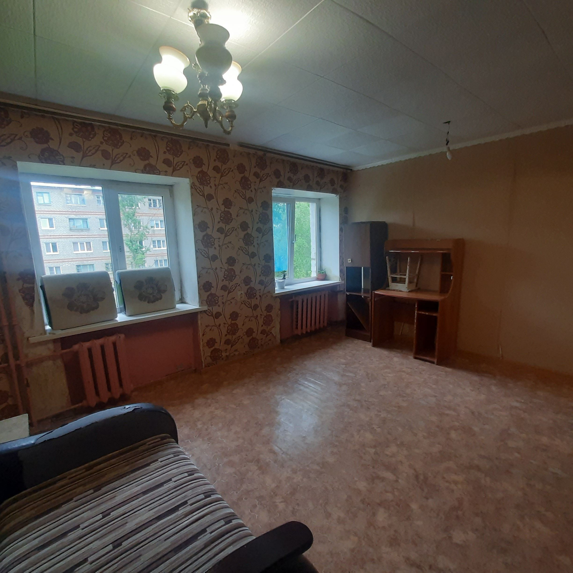Кирпичный дом. Не угловая. Большая по площади 25 кв.м. В комнате два окна, окна выходят во двор.