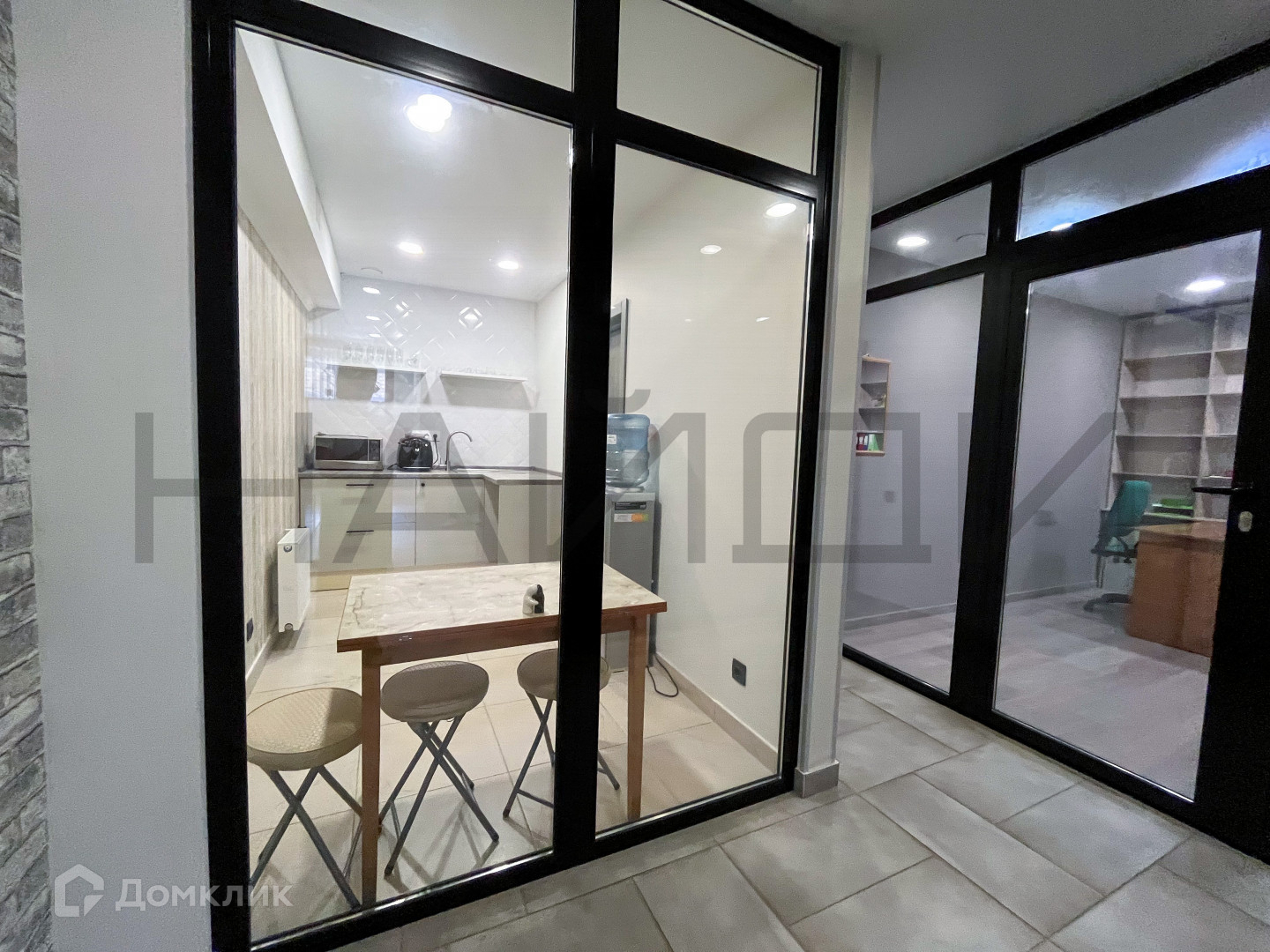 В помещении качественный ремонт - стеклянные перегородки, санузел с душевой, кухня;