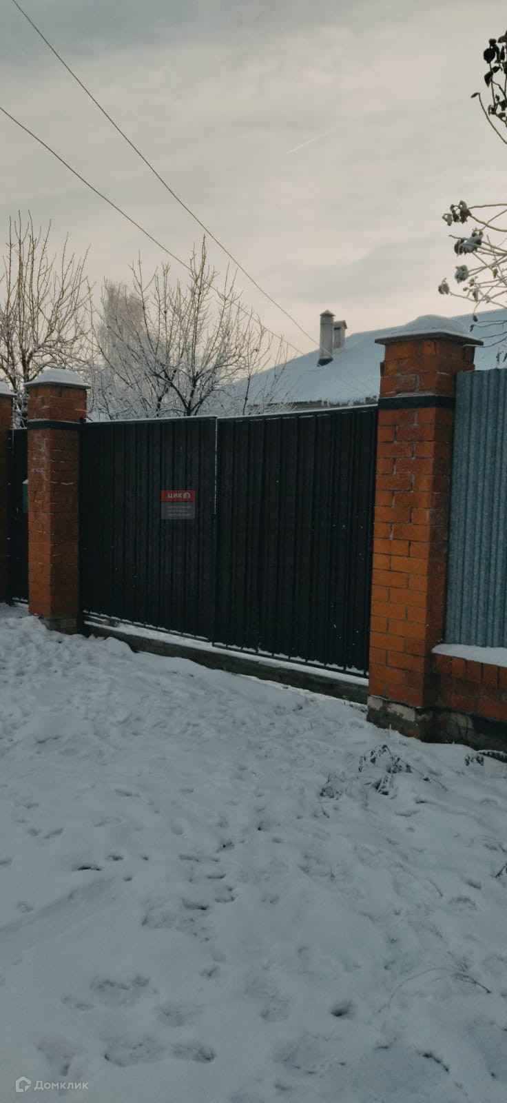 Новый забор с кирпичными столбами. Крыша тоже новая.