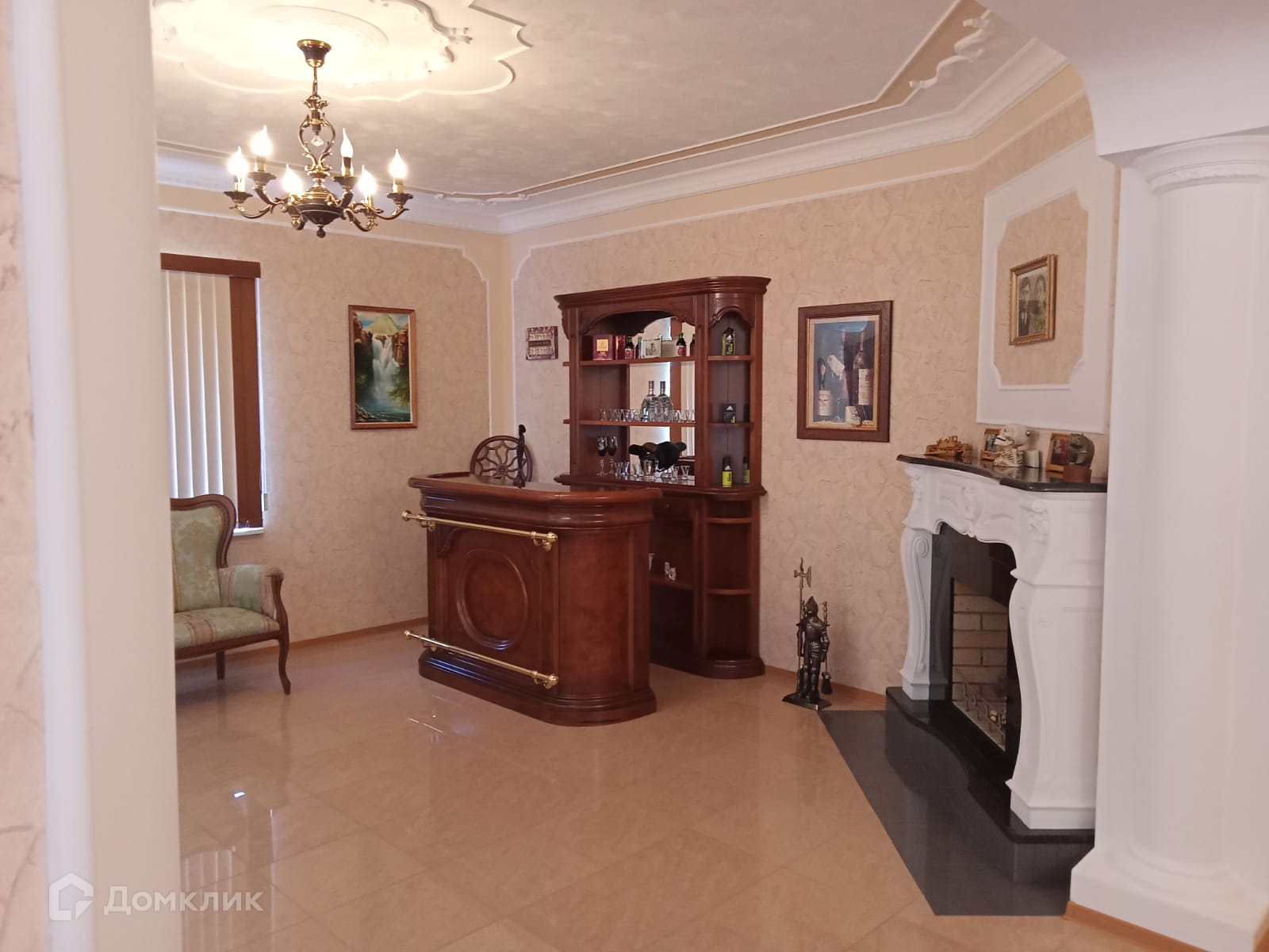 2 этаж: кухня, гостиная с действующим камином, санузел с джакузи.
