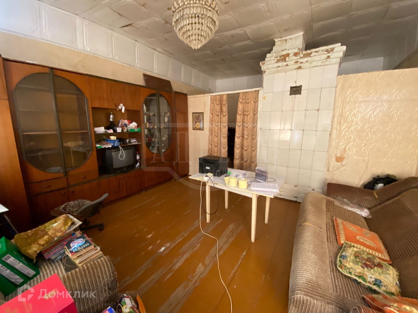 Внутри дома расположены смежно- изолированные комнаты. Две  кухни. В одной из них оборудован подпол для хранения консервации. Отопление АОГВ. Горячая вода-газовая колонка.
