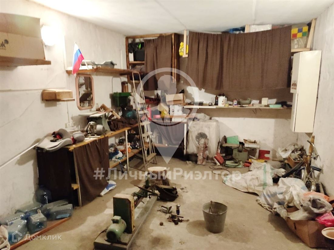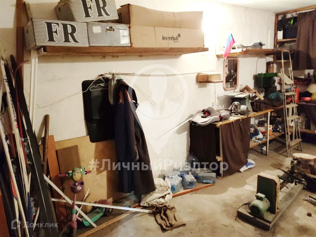 В гараже остается мебель стеллажи, полки, стол, верстак.