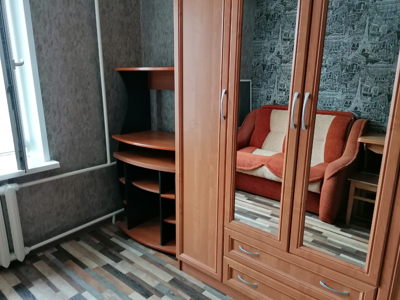 В комнате окно ПВХ, сделан  отличный ремонт, остается вся мебель и техника!