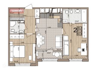2-комнатная квартира на продажу, 64.8 м2