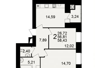 Продается 2-ком. квартира, 56.6 м2