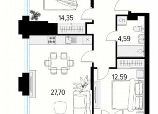 Двухкомнатная квартира на продажу, 69.3 м2