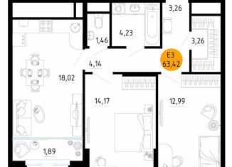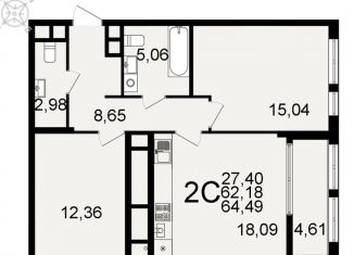 Двухкомнатная квартира на продажу, 63.4 м2